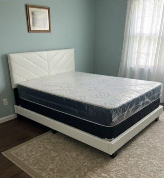 New Platform Bed Frame with Headboard Mattress and box spring set Innerspring Mattress 10"