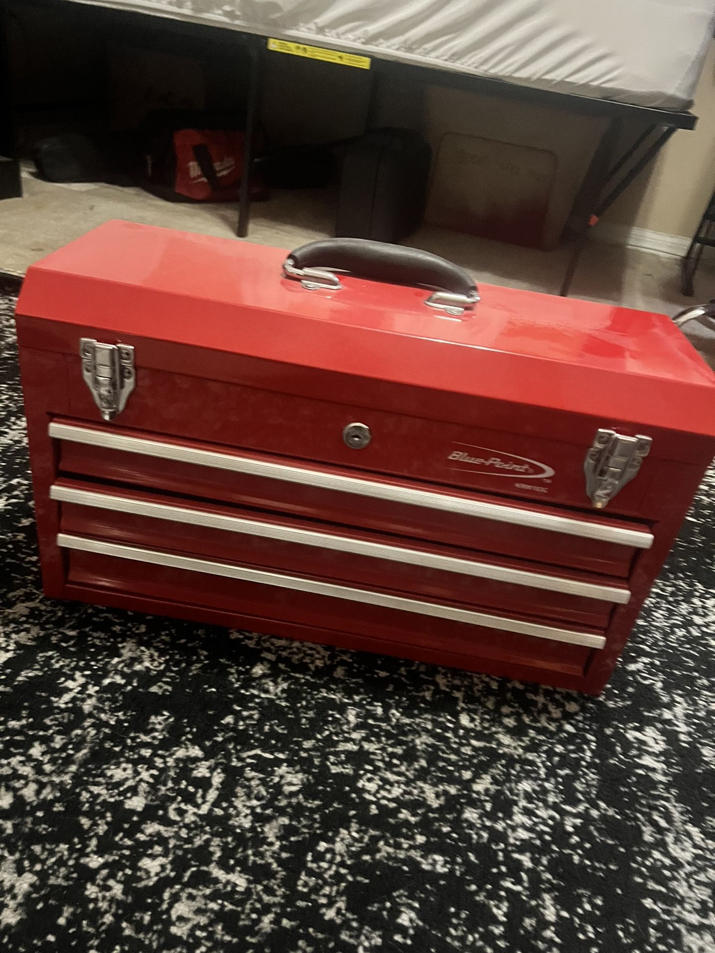 Brand new Bluepoint 3 drawer plus top flips open. Never used. I Bought it but it does not fit on my Rolling Tool box. BRAND NEW NEVER USED Price is firm.