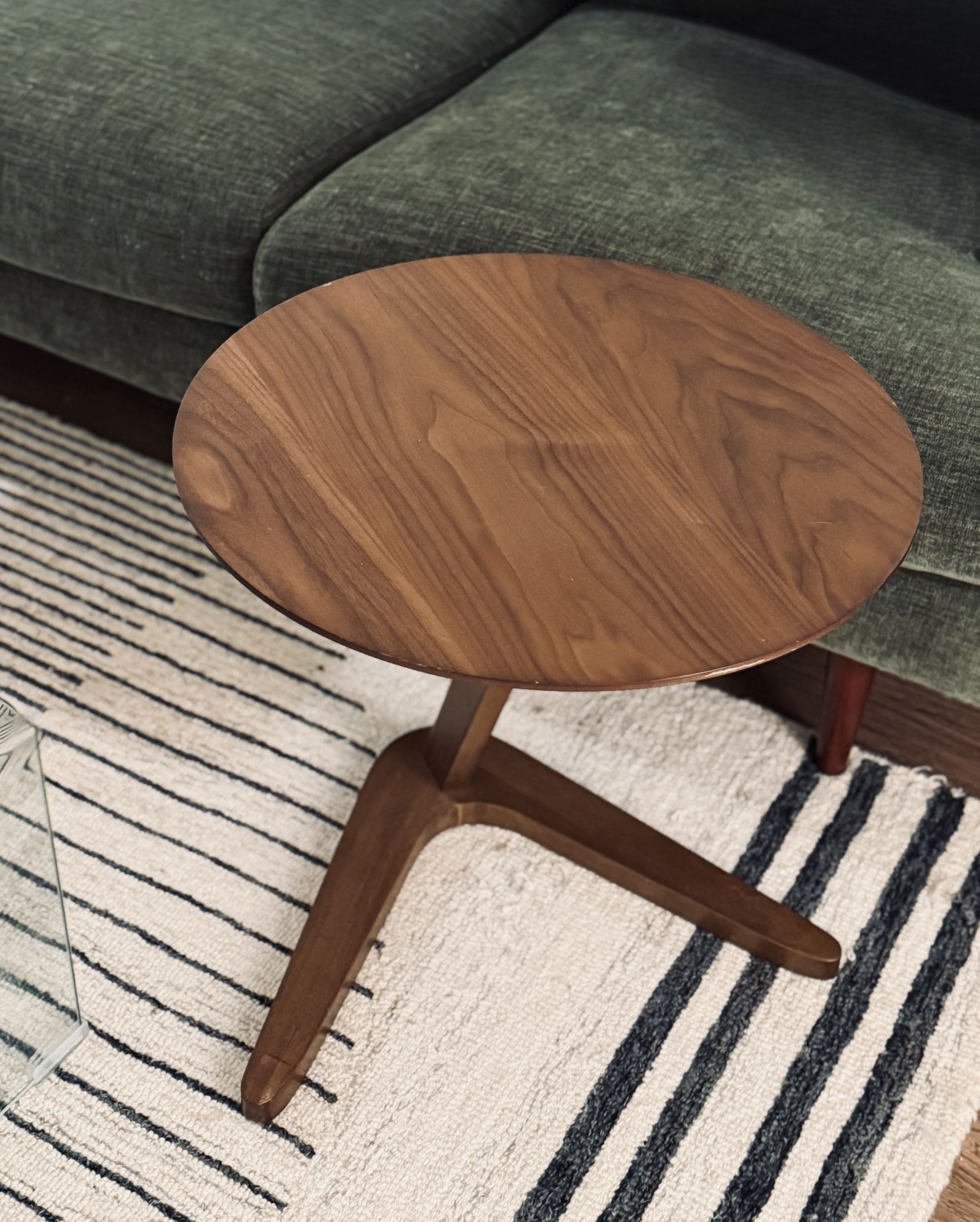 Walnut Side Table — Mid-Century Tripod Design
