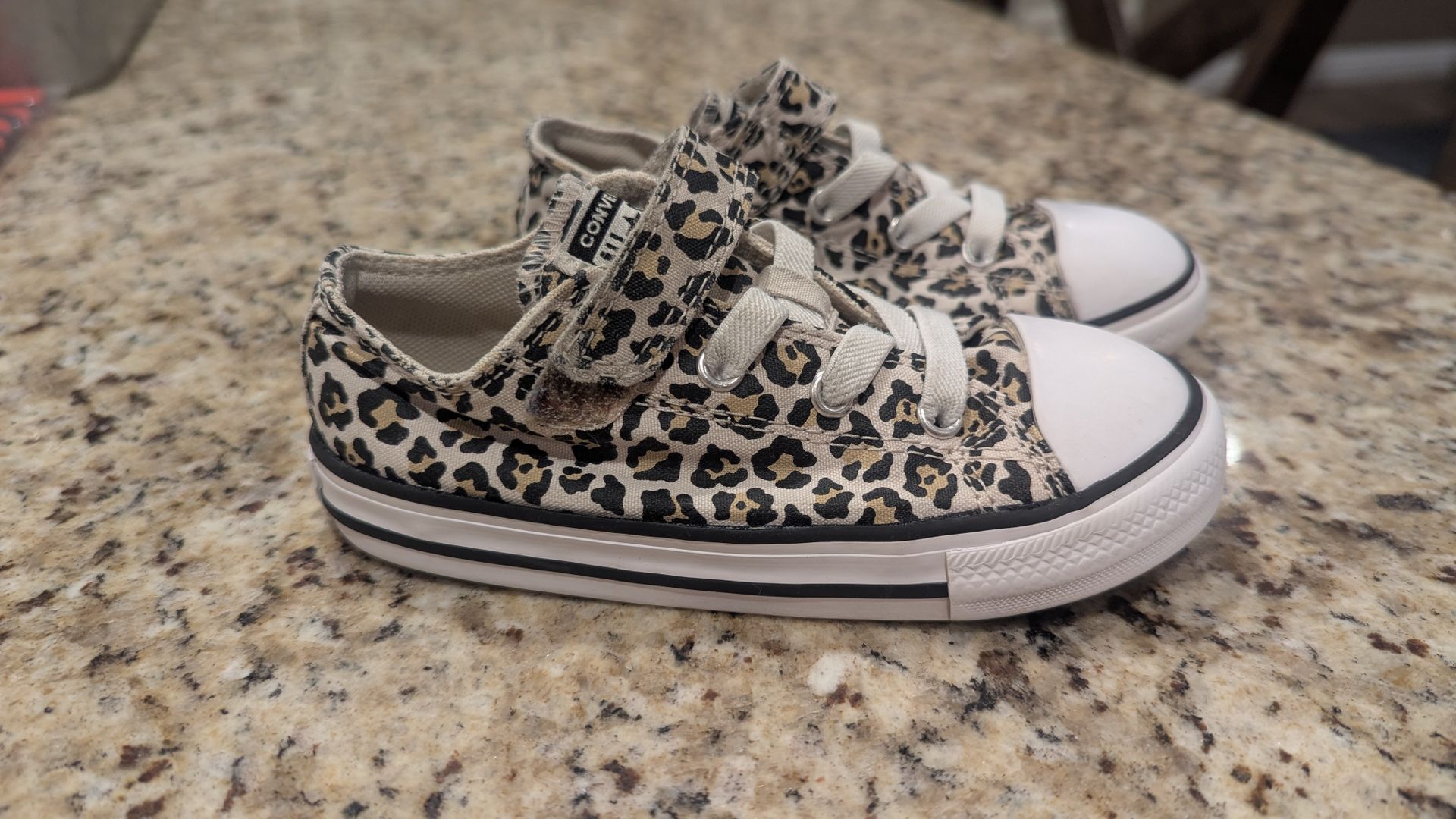 Used animal print toddler converse shoes. Still in great condition and these were just washed. TODDLER SIZE 9. If you have any questions please don't hesitate to ask. I also have lots of other boy and girl toddler shoes so you may inquire within.