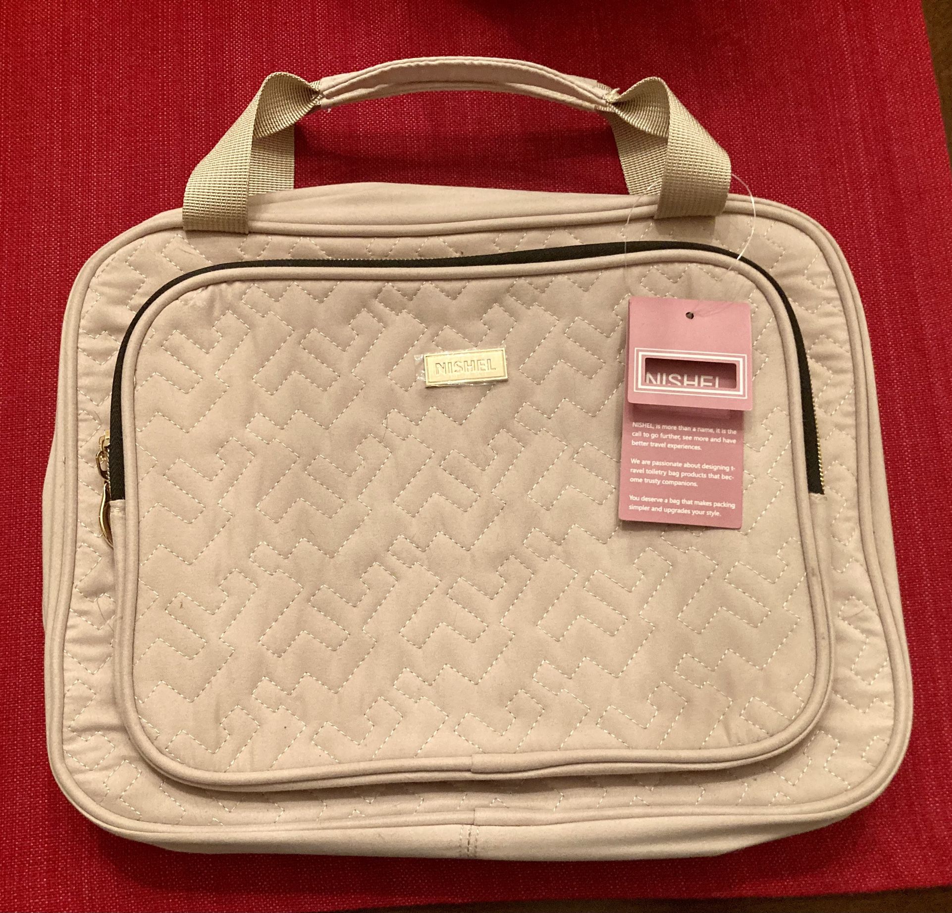 NISHEL HANGING MAKEUP/TRAVEL BAG VERY CUTE NEW WITH TAGS! This a brand new hanging makeup bag. Retails for much more and still has the tags attached. Great for travel and that overnight or weekend trip. (: Comes from a smoke-free home... If you're looking for a quality, hanging makeup bag at a great price, here it is! Don't miss this one... Someone is going to get a great deal!