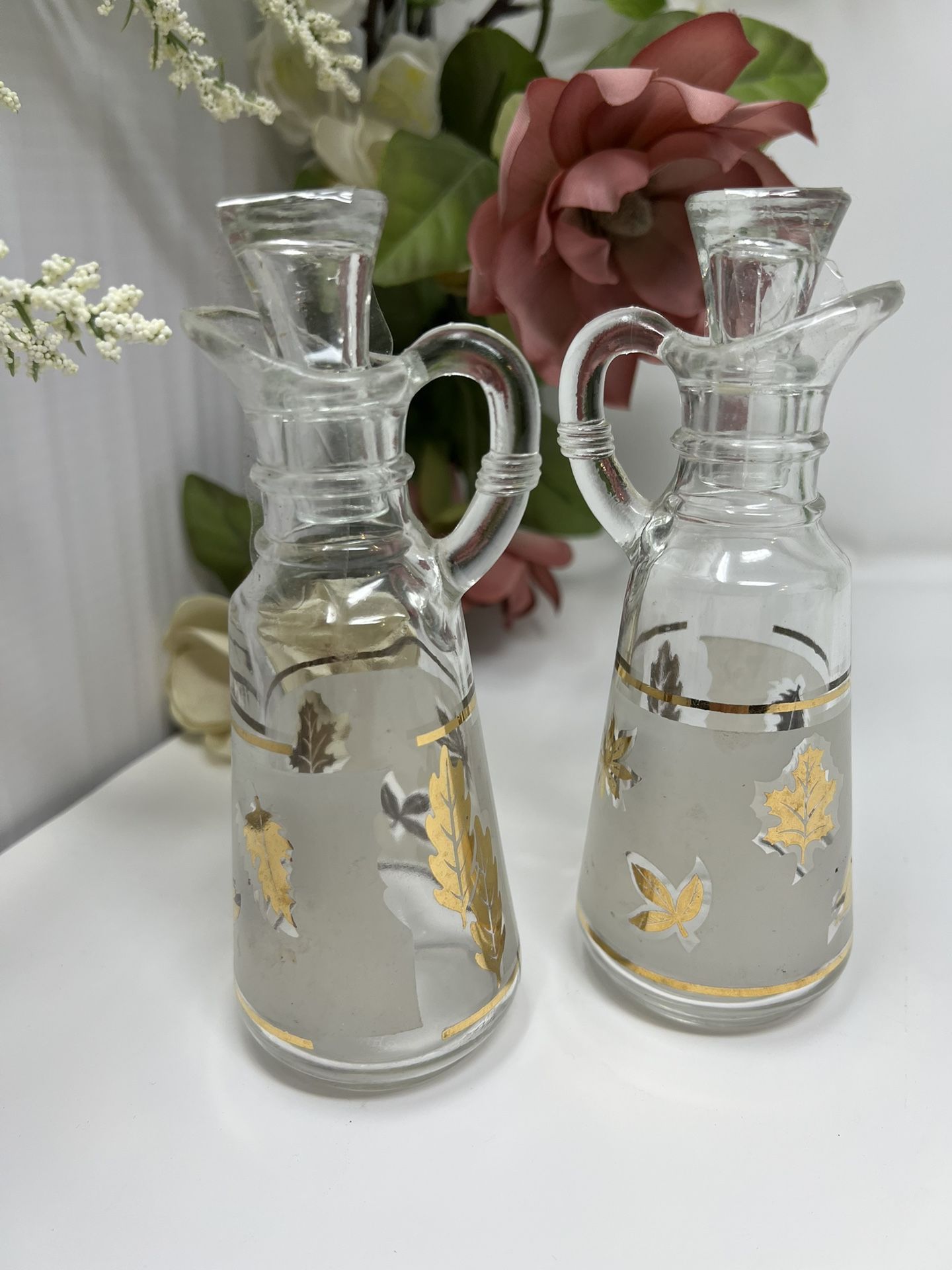 Vintage Anchor Hocking Gold Leaf Cruet Set w/ Stoppers – Set of 2