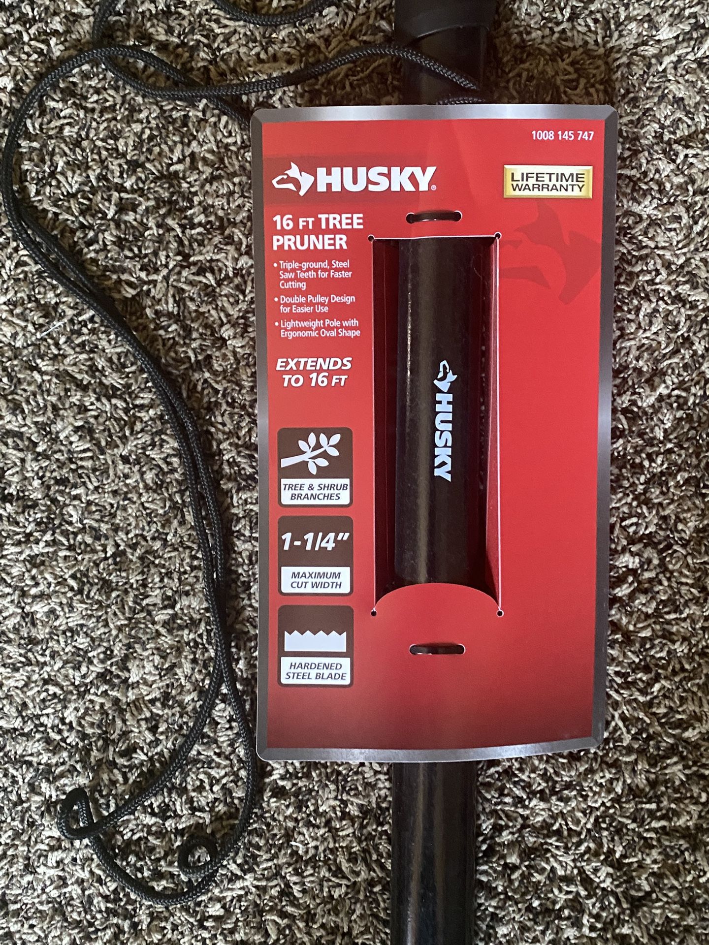 Brand New Husky telescopic pole saw. Extends to 16 feet. Triple-ground steel saw teeth for faster cutting. Double pulley design for easier use. Lightweight pole with ergonomic oval shape.