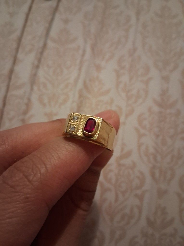 18k gold ring 2.0 grams 1 ruby stone And 2 small diamonds
