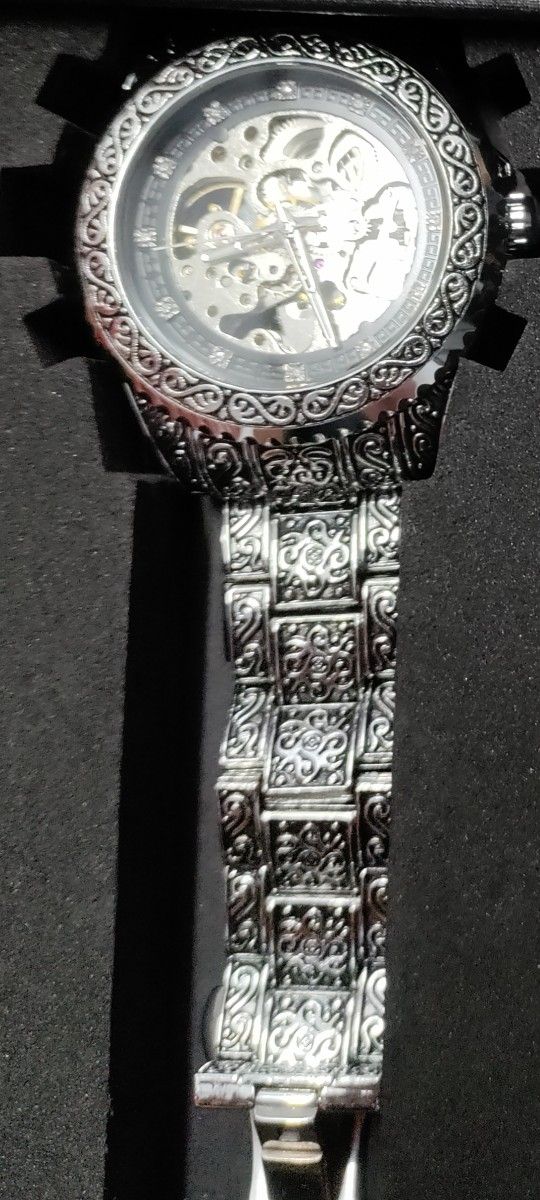 limited edition men's stainless steel skeleton watch. Automatic, no battery needed. Cash only, first come first serve.