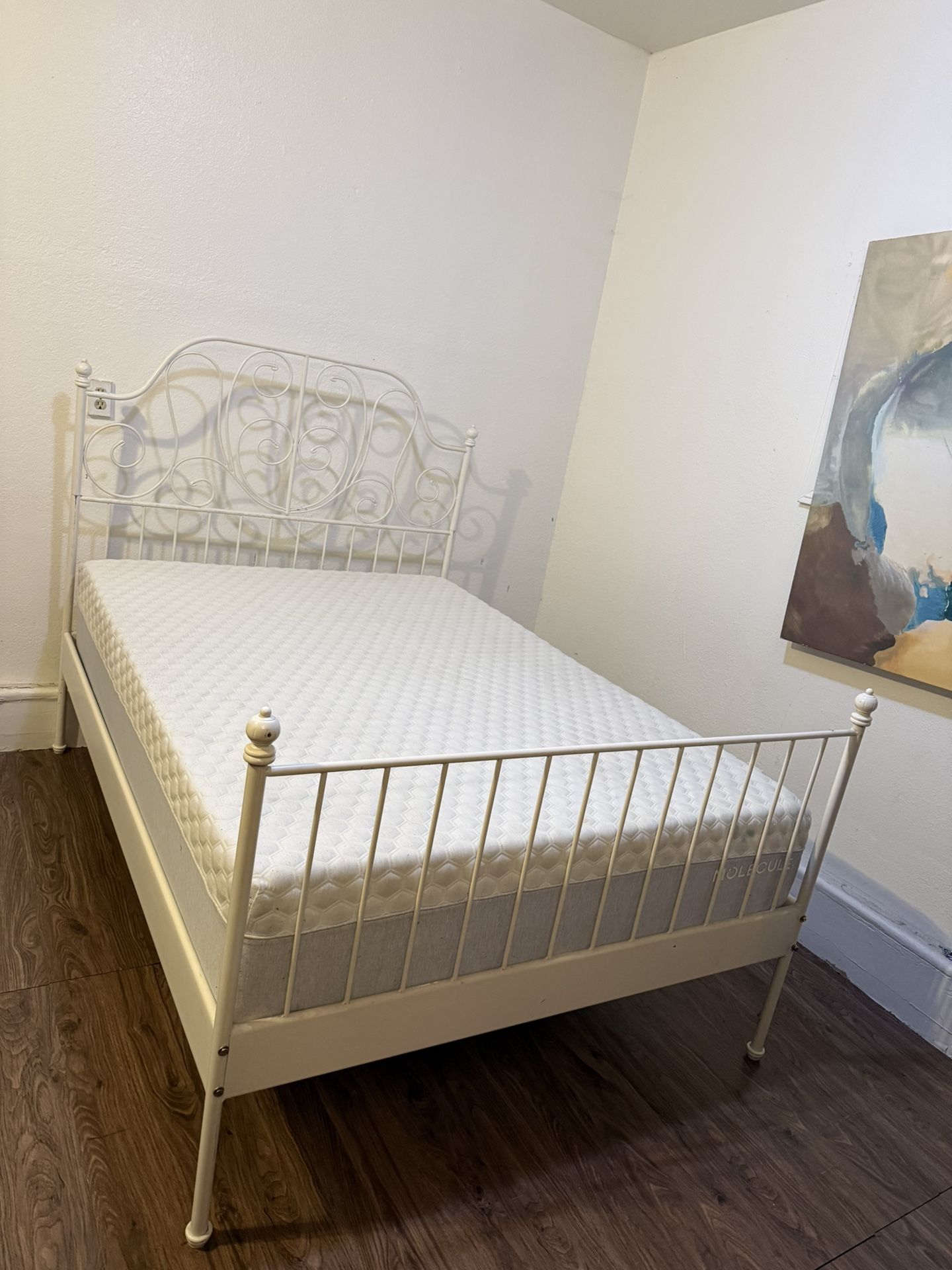 Used but good condition Full Size Bed Metal Frame - White Color Memory Foam Mattress I can delivery