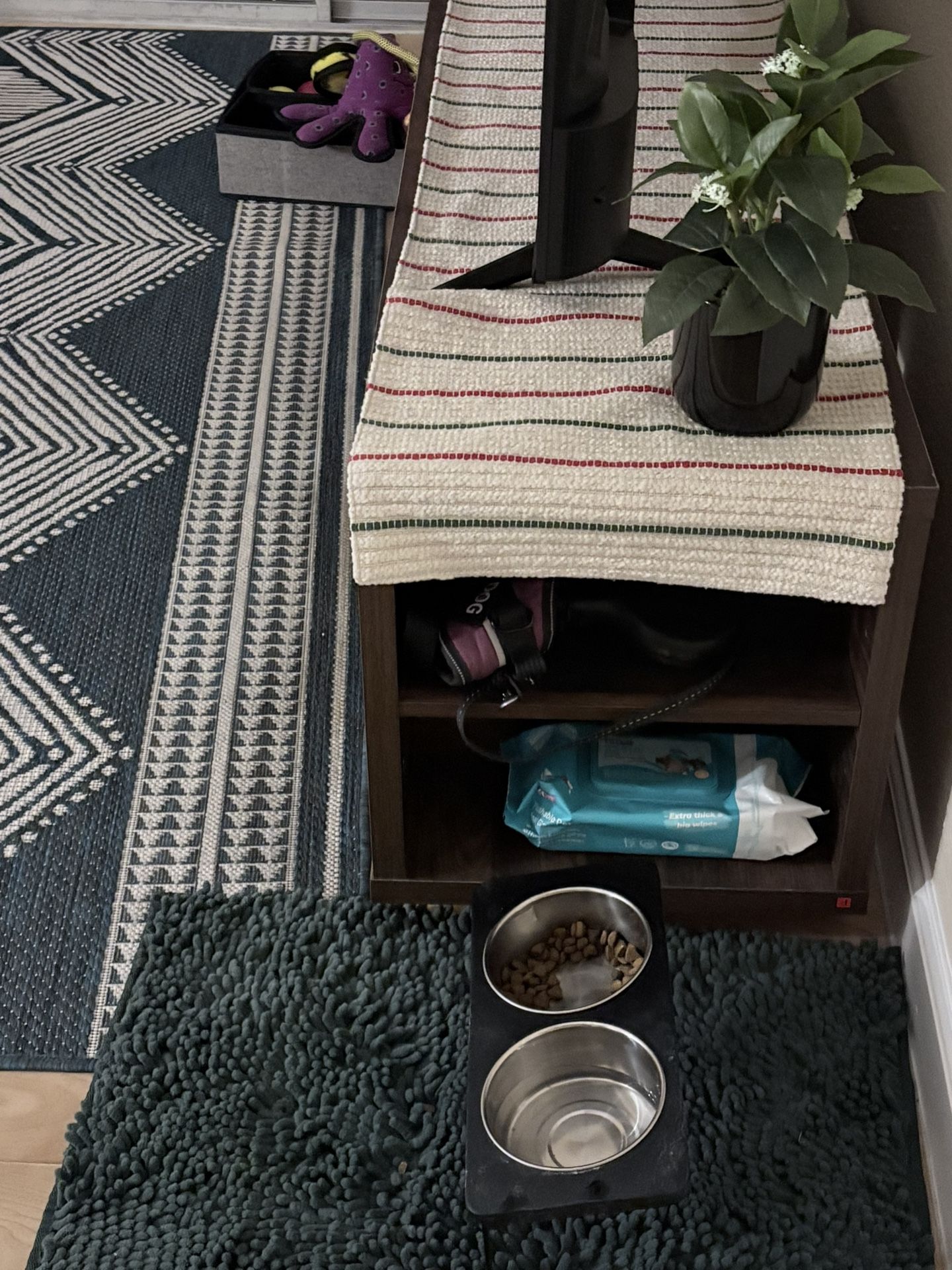 4 big cubbies 2 little cubbies on both sides TV NOT INCLUDED.