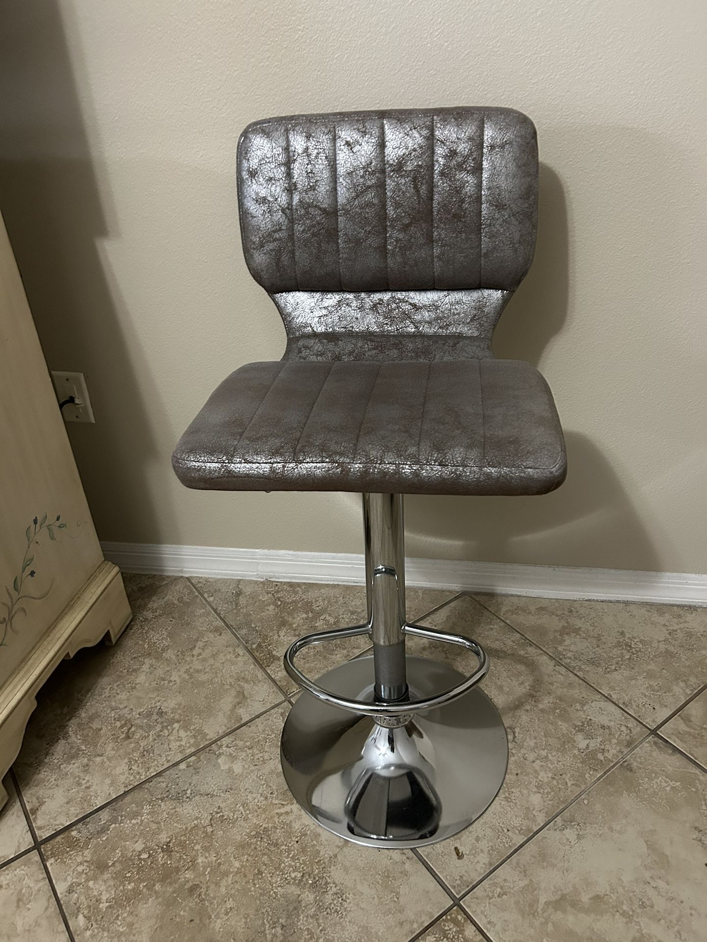Adjustable Swivel Shell Back Hydraulic Chair Bar Stool. Silver brown cloth finish. Indoor outdoor will trade for bicycles