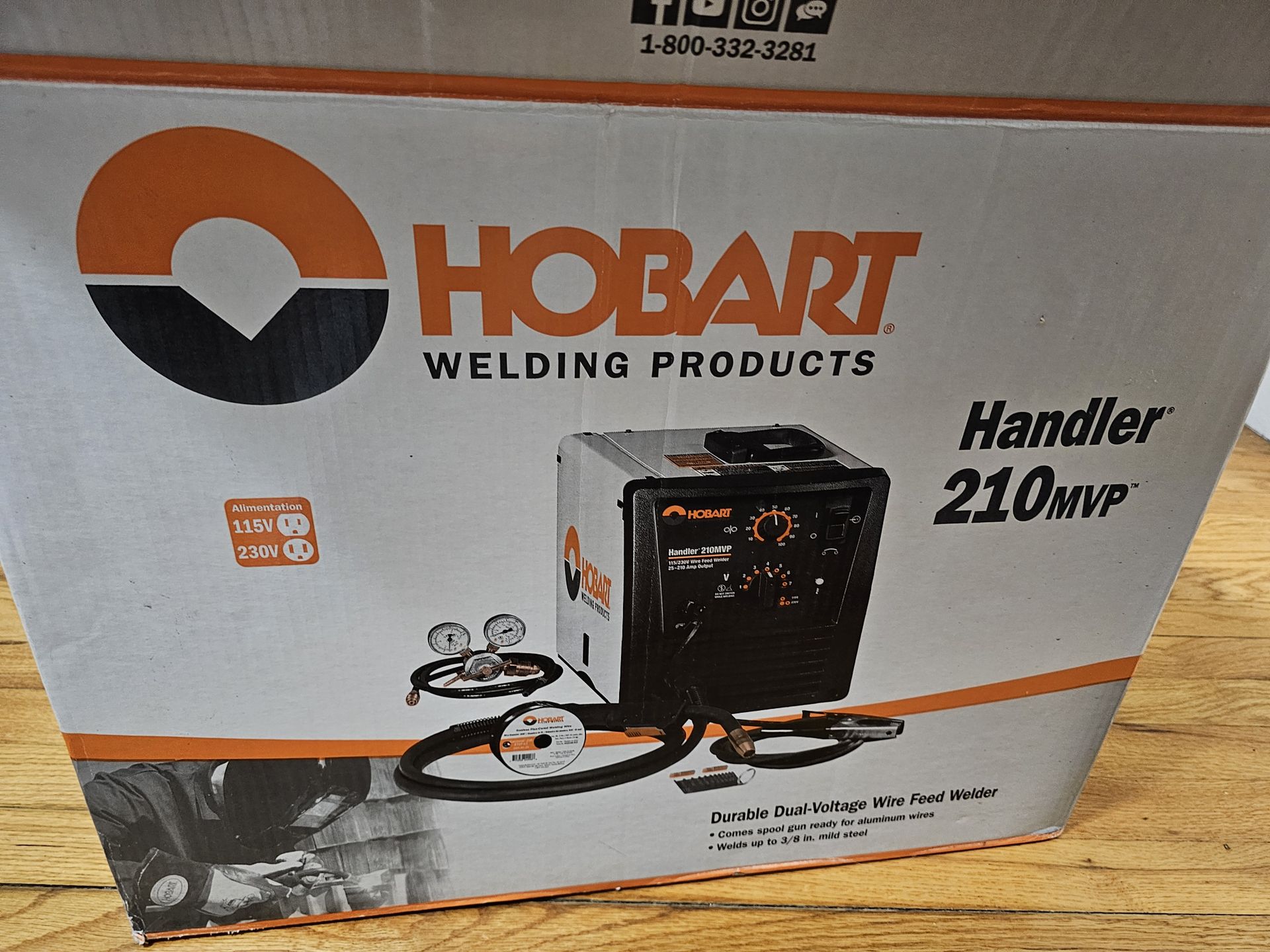 Hobart 210 / 115 Welder both quickly switch between 210 and 115 never used open box Comes with still in box Welding cart