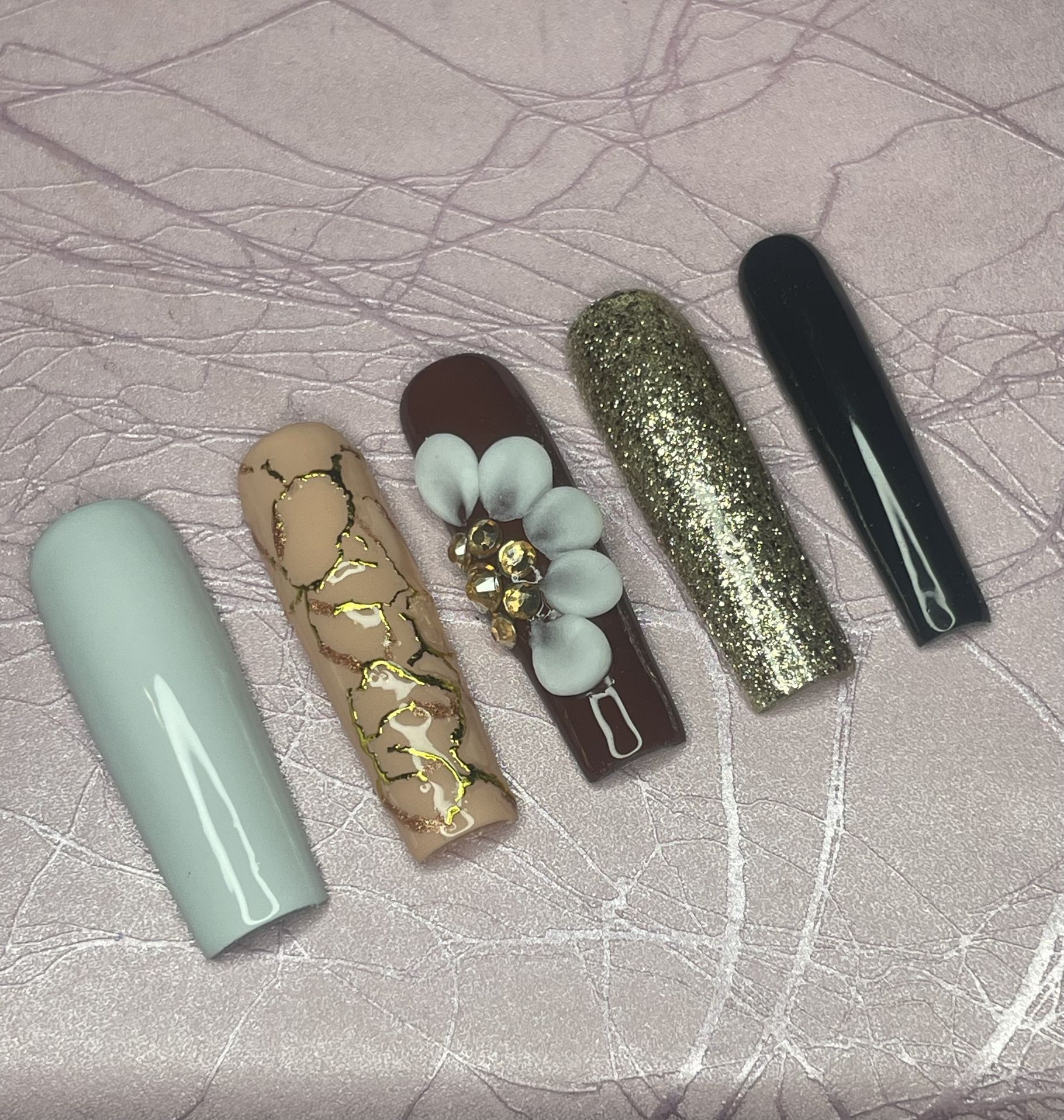 Available in extra short -3XL Almond, coffin , stiletto, round , lipstick,square Includes buffer,glue,nail tabs,cuticle pusher,file,nail wipe They are reusable and can last for weeks on if you prep your natural nails properly. They will be pre-etched to allow better adhesion. Message me with your sizes and the shape you would like along with any other changes you would like to make. Extra $10 if you want acrylic instead of gel. I can also recreate any set you’d like me to . Sizing kits are available for $6 (enough to cover shipping) . If you purchase a sizing kit you will get a $6 discount on your nail set .