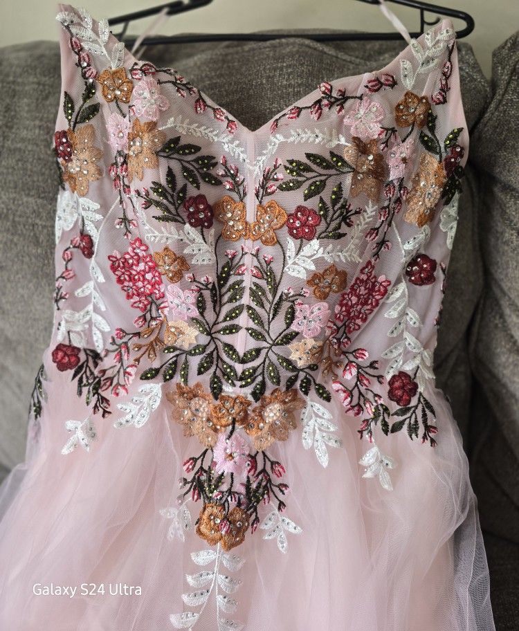 Blush Pink Dress Embroidered / Party / Quince / Prom