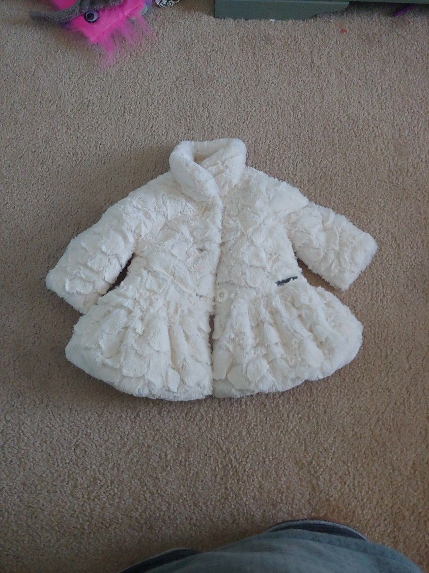 Worn once. 6/9month Calvin Klein soft fur coat.