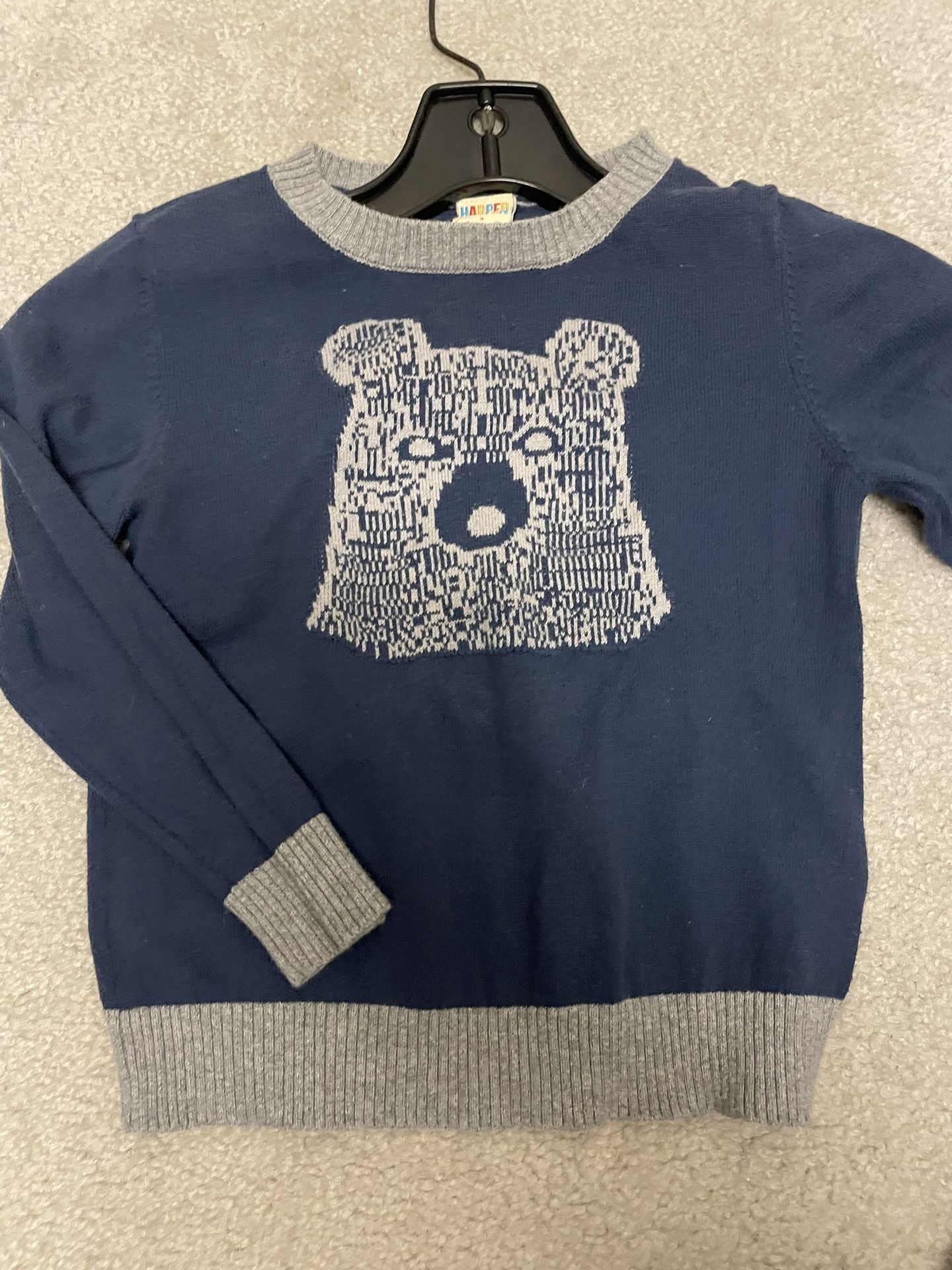 1. Jumper inside fleece (sold) 2. Polar bear (light sweat knit) 3. Circle emblem 4. Two tone sweater $3 each all for $10 2-3T