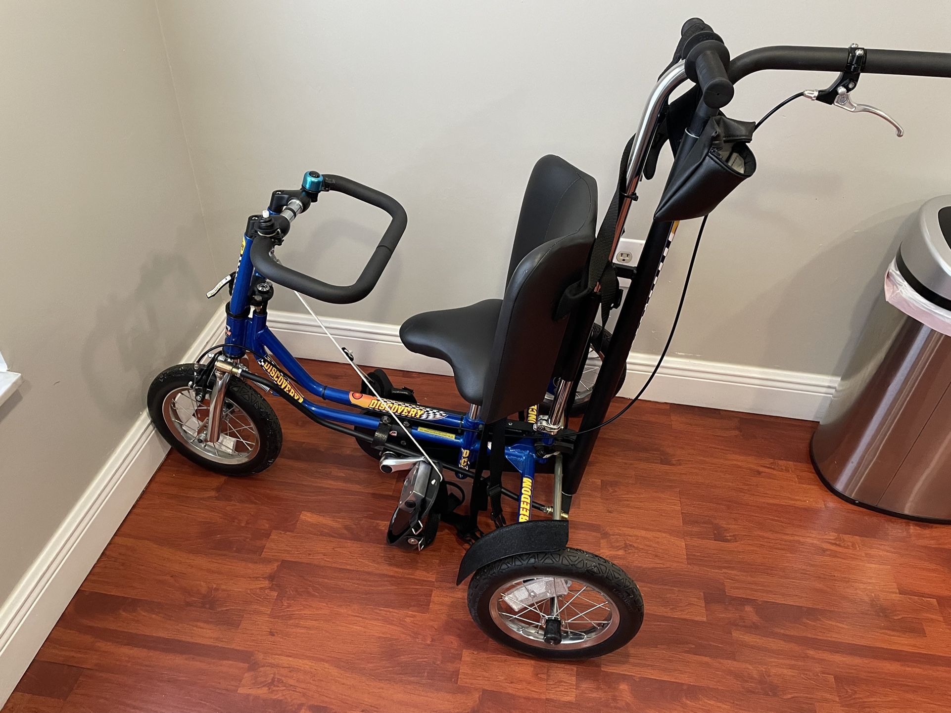 Adaptive trike made by Freedom concepts for kids with special needs. Has lap belt, chest harness, straps for the feet, you can allow them to steer or you can steer. This is a small so it’s ideal for ages 2-4 depending on their size. Serious inquiries only. This is a $5k bike is very well kept condition