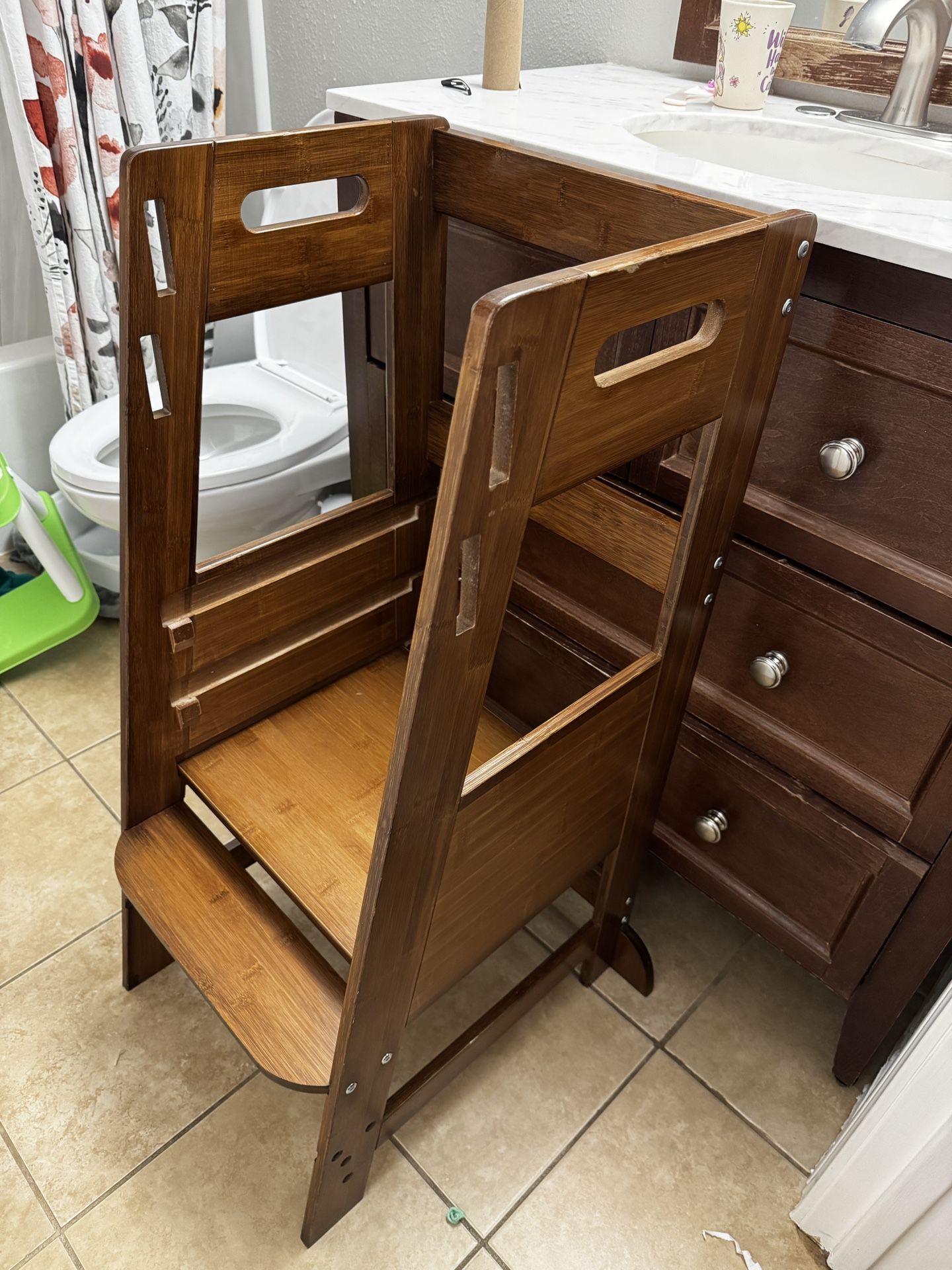 We don’t have the non slip mat anymore, otherwise in great condition, it’s been a great part of our daughter’s everyday life, now she grown out of it.