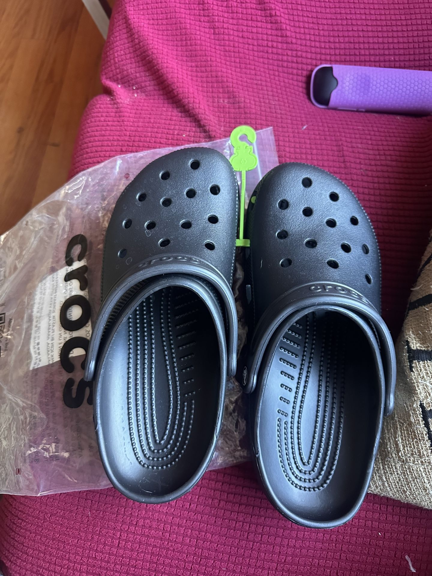Black Crocs, brand new, never worn. Size 8 for men or 10 for women.