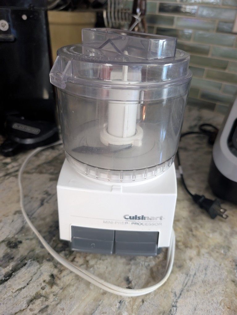 Cuisinart mini-prep food processor in good working condition. Great little kitchen helper for chopping onions, herbs, garlic, nuts, and small prep jobs without dragging out a full-size processor. Includes bowl and lid shown in photo. Normal wear from use. Pickup only.