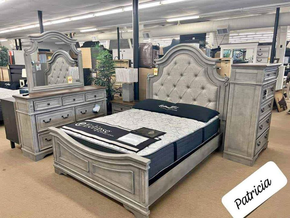 $10 Down Payment Finance ▪️Brand New ▪️Lodenbay Antique Gray Queen 4 Piece Set▪️ Queen Panel Bed/ Dresser / Mirror/ Nightstand