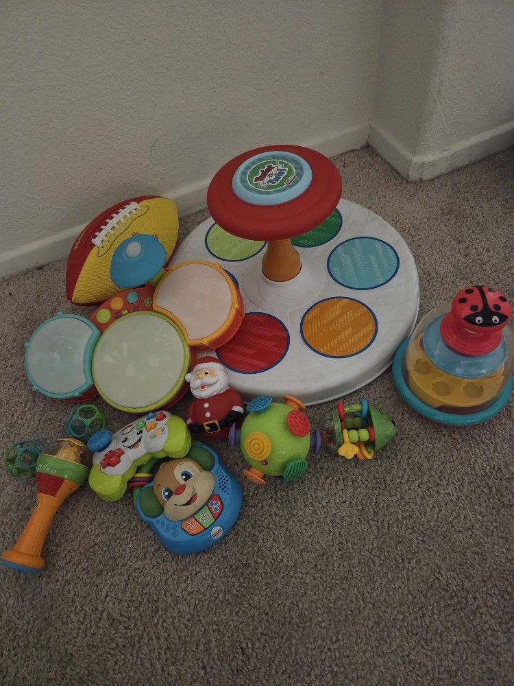 Twist n twirl, spin toy, drums does not have the sticks, sensory bumpie ball see pics for more info $15 for all