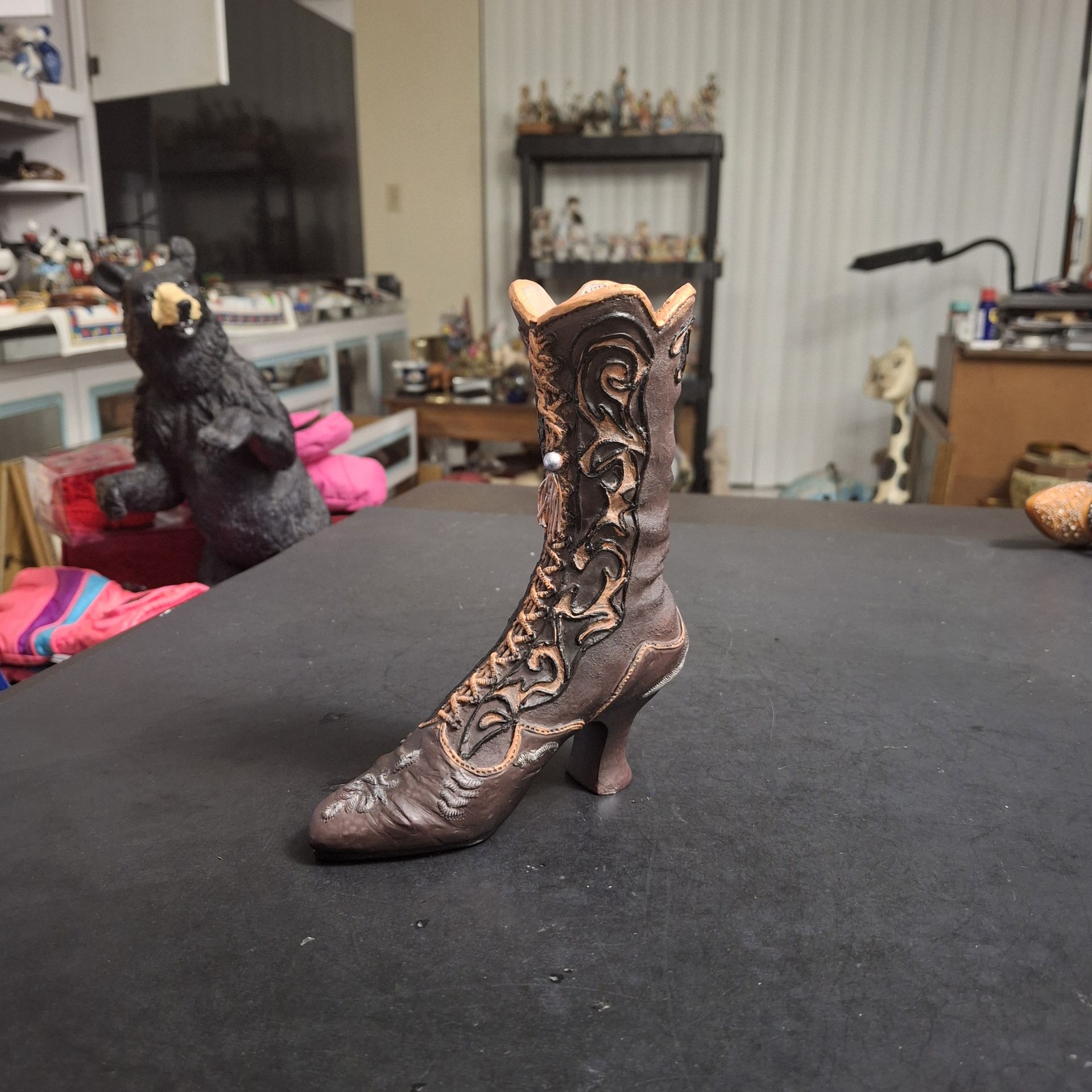 Victorian Style High Heel Boot Antique Look Miniature Decorative Boot, High Quality Resin Collectible Series "Boots Of Distinction " 6"H