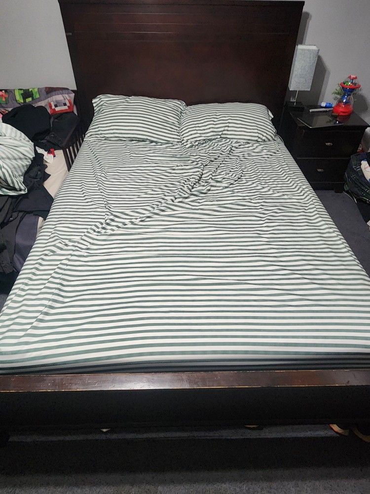 Full size bed frame, head/foot board. Disassembled for easy transportation. All hardware complete. !!! Matress not included !!!