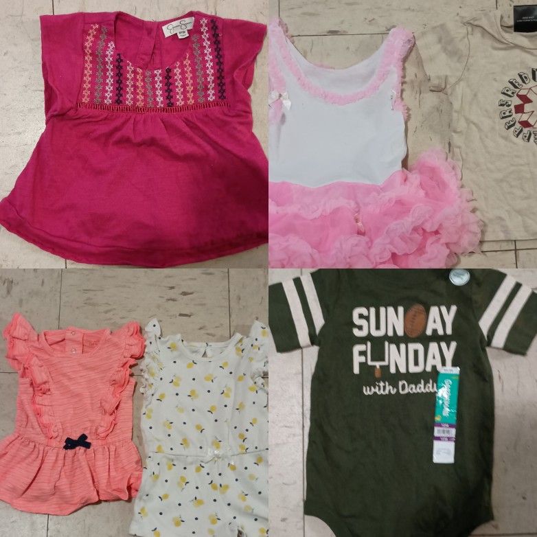 Baby girl bundle 6-12m 6 pieces of clothing 3 shirts 2 dressed 1 short romper brand: little me/cat &jack/garanimals/Jessica Simpson/red hot chilli pepper/princess