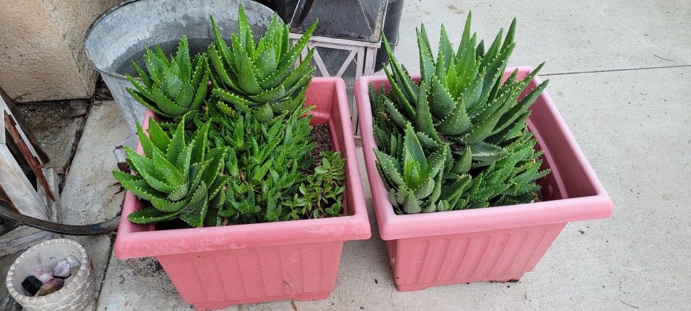 2 Large Pots With Succulent