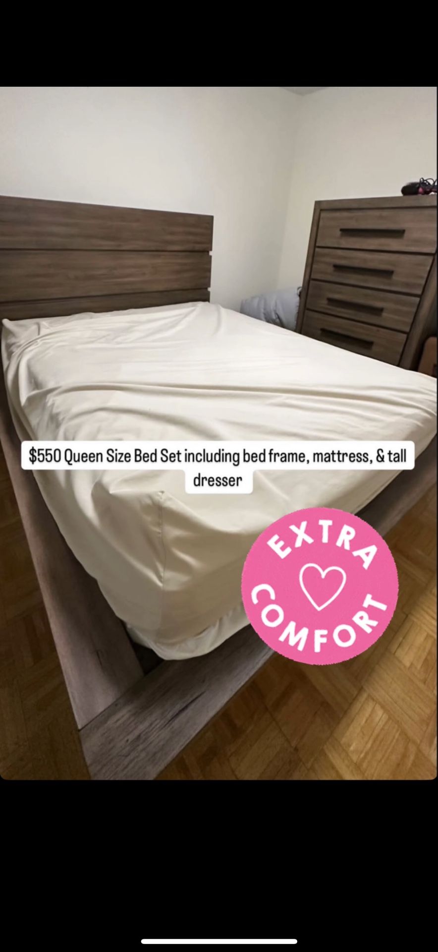 Queen Size Bed Frame With Storage & Mattress And Dresser With Top Storage