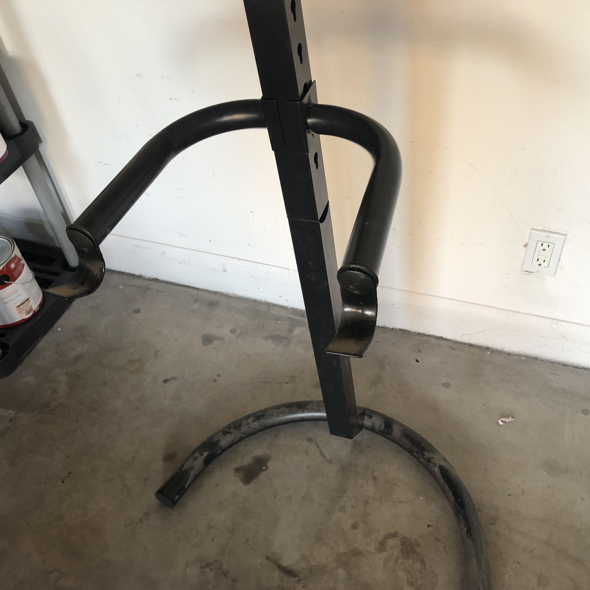 Black metal double bike rack. Adjustable. Comes apart. Excellent condition. Perfect for saving space in your garage or porch. Pick up only.