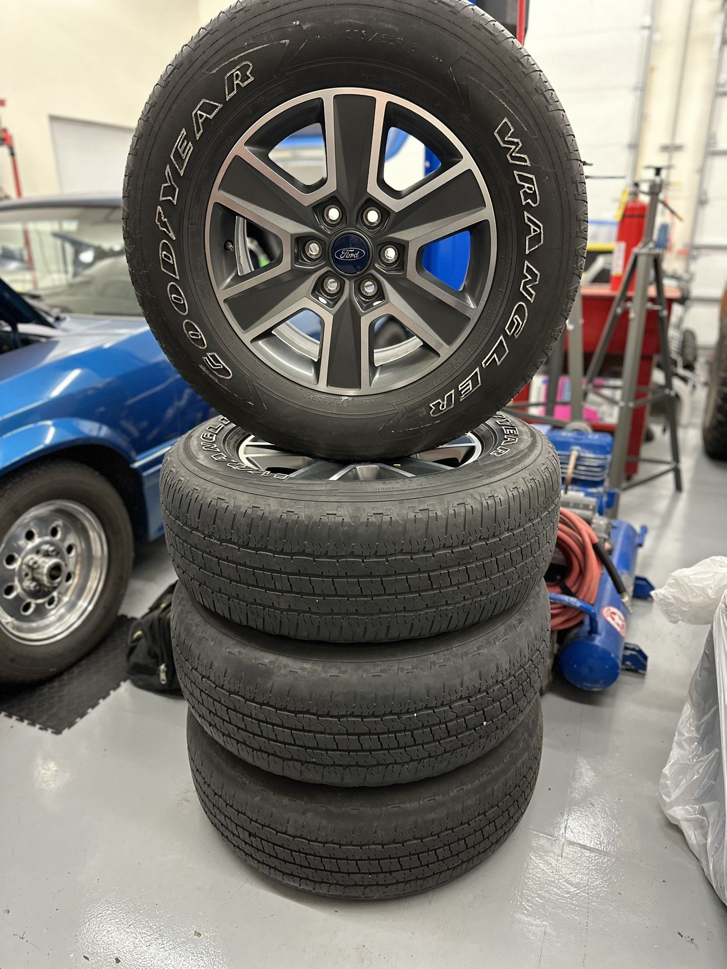 The tires are worn but the rims are in EXCELLENT condition Late model Ford F150 alloy rims 18" alloy rims Tire size : 275 /65R18