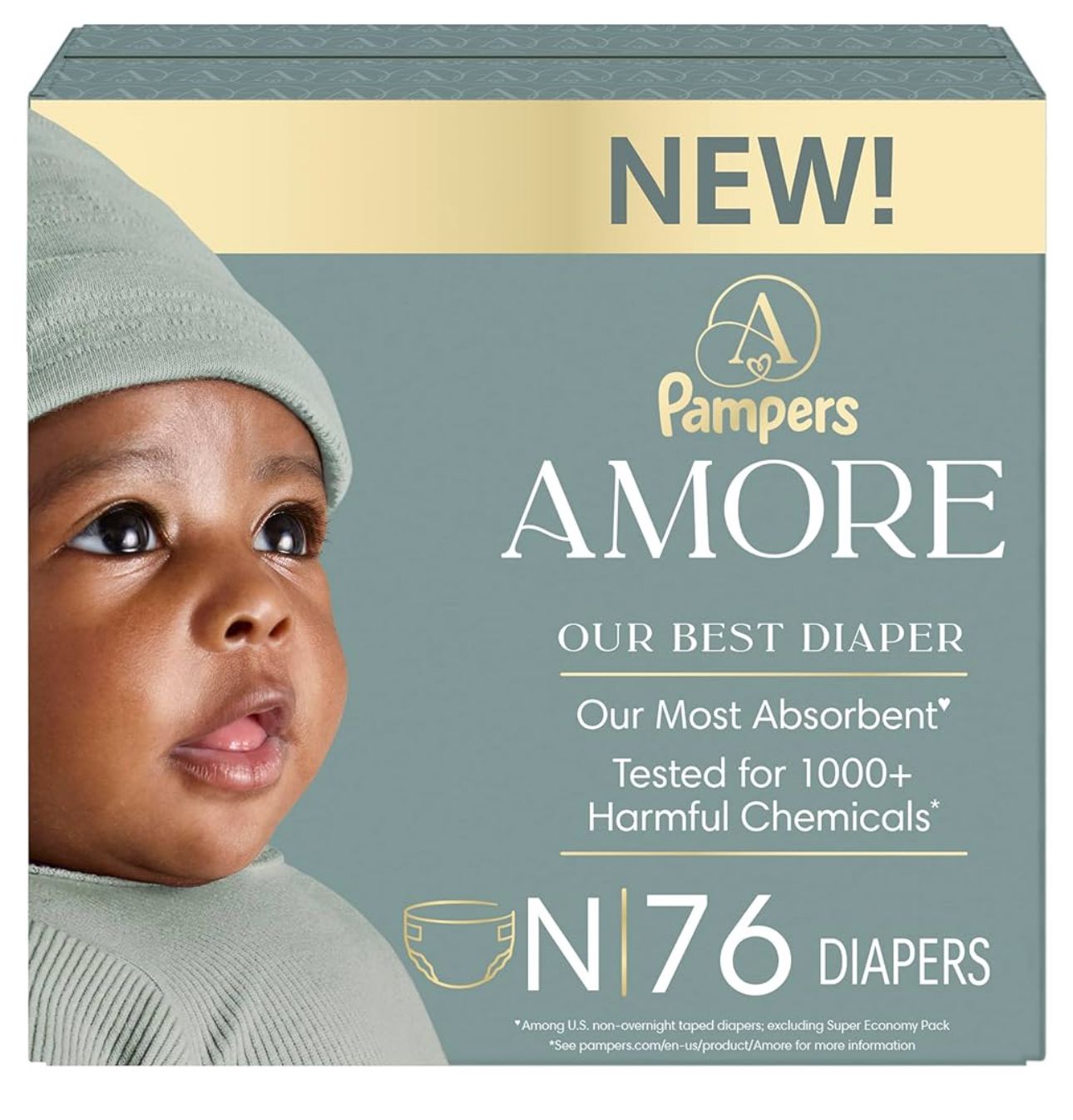 Pampers Amore, Size 0 (up to 10 lbs), 76 Count NWT
