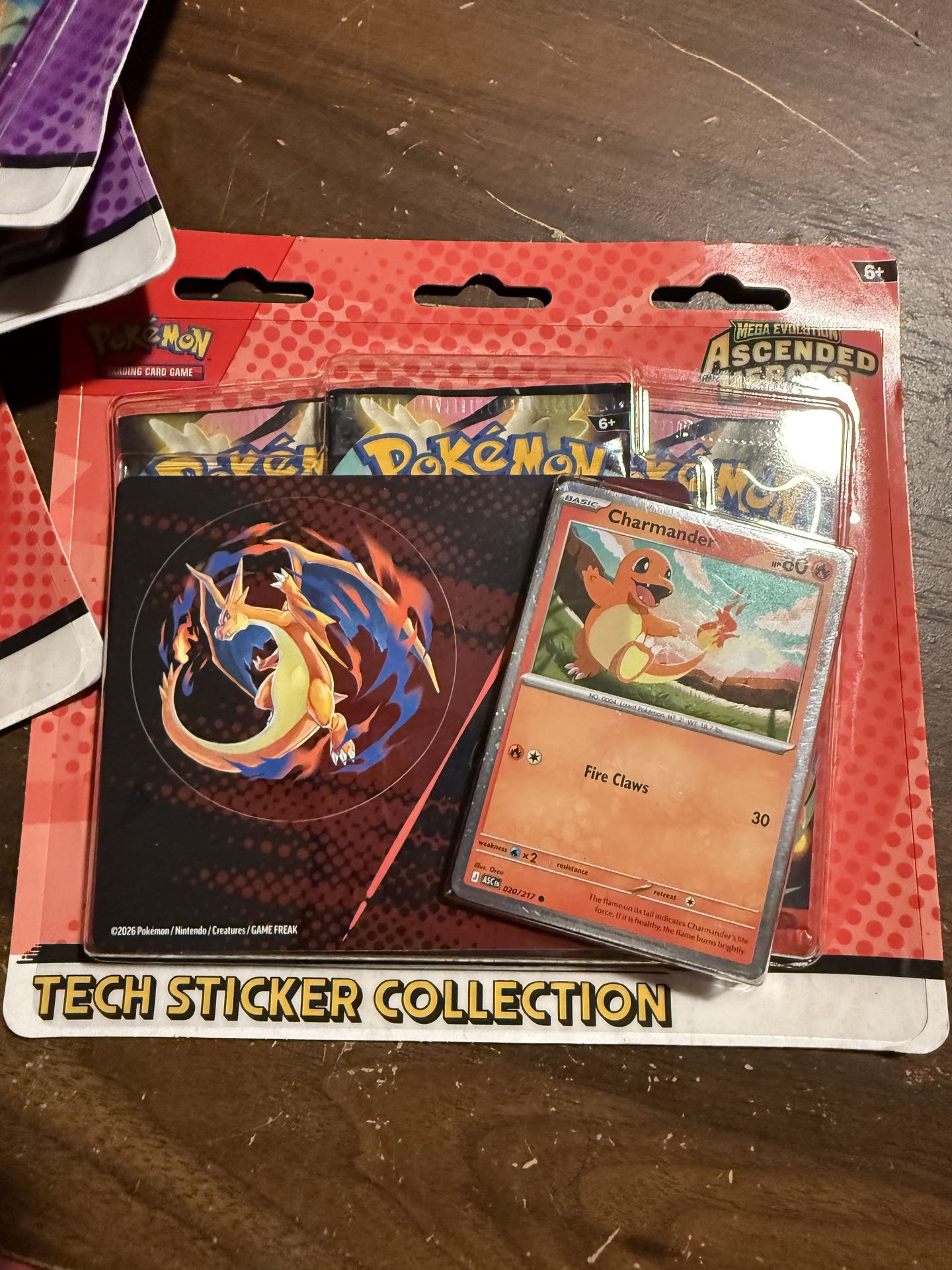 Pokémon ascended heroes Charmander tech sticker collection 3 pack