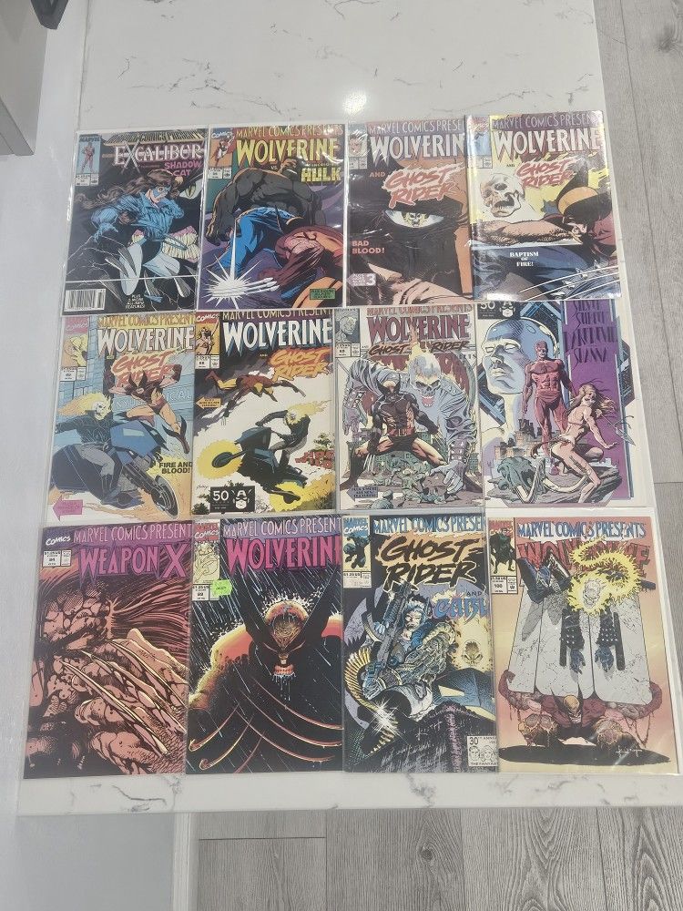 All comics are priced individually. Bulk deal for all 11 comic books $45 total. *Marvel Comics Presents #32 1989 Newsstand, Todd McFarlane Cover $8 *Marvel Comics Presents #55 1990 Wolverine vs Hulk $5 *Marvel Comics Presents #64 1990 Wolverine Ghost Rider $4 *Marvel Comics Presents #65 1990 Wolverine Ghost Rider $4 *Marvel Comics Presents #66 1990 Wolverine Ghost Rider Cover $4 *Marvel Comics Presents #68 1991 Wolverine Ghost Rider Cover $4 *Marvel Comics Presents #69 1991 Wolverine Ghost Rider Cover $4 *Marvel Comics Presents #84 1991 Weapon X $8 *Marvel Comics Presents #89 1991 1st Joe Madureira Work Full $8 *Marvel Comics Presents #90 1991 Ghost Rider & Cable, Wolverine other cover $4 *Marvel Comics Presents #100 Flip Cover Issue, Wolverine Lifting 100 on back w/Ghost Rider $5 I have other listings for sale. Willing to trade for other comic books, vinyl records, weights, vintage video games, Jordans, anything related to the Marvel characters Venom, wrenches, ratchets, socket