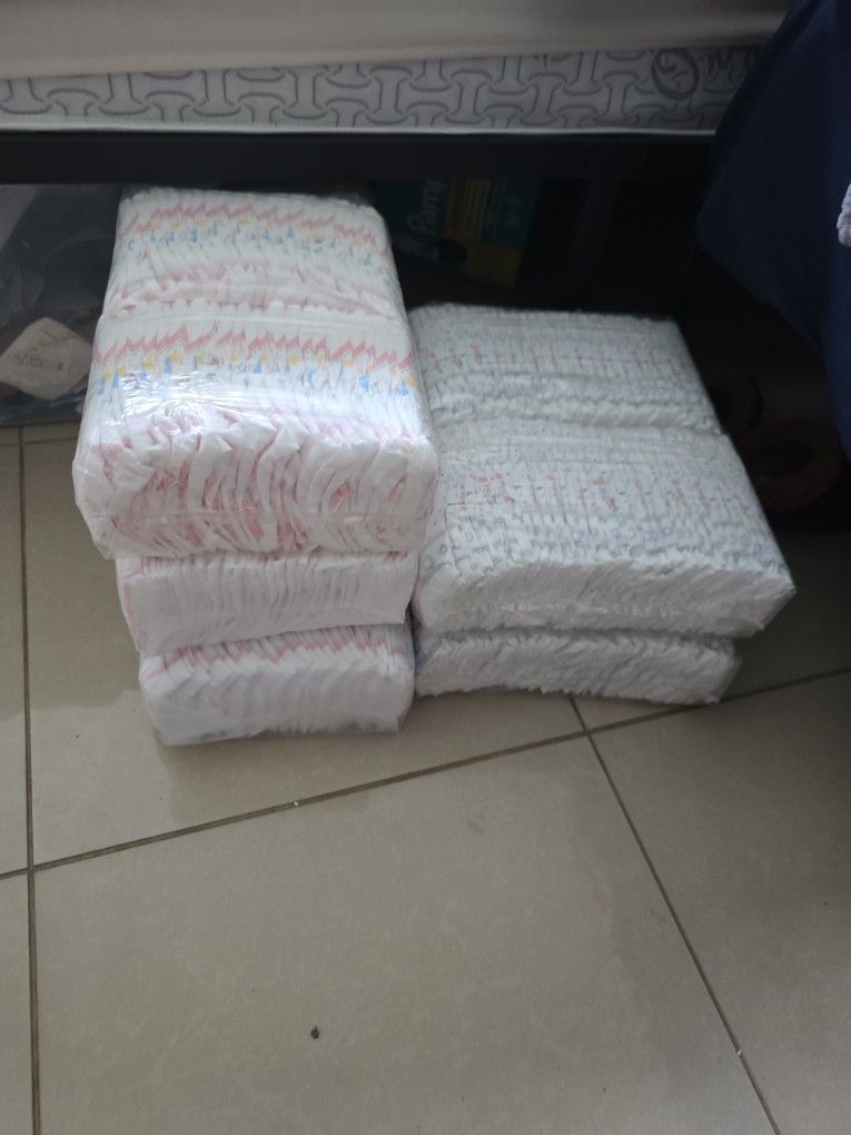 Size 1 and 2 diapers open boxed And size 1 pampers closed box $15 each bag of diapers $25 diapers closed box