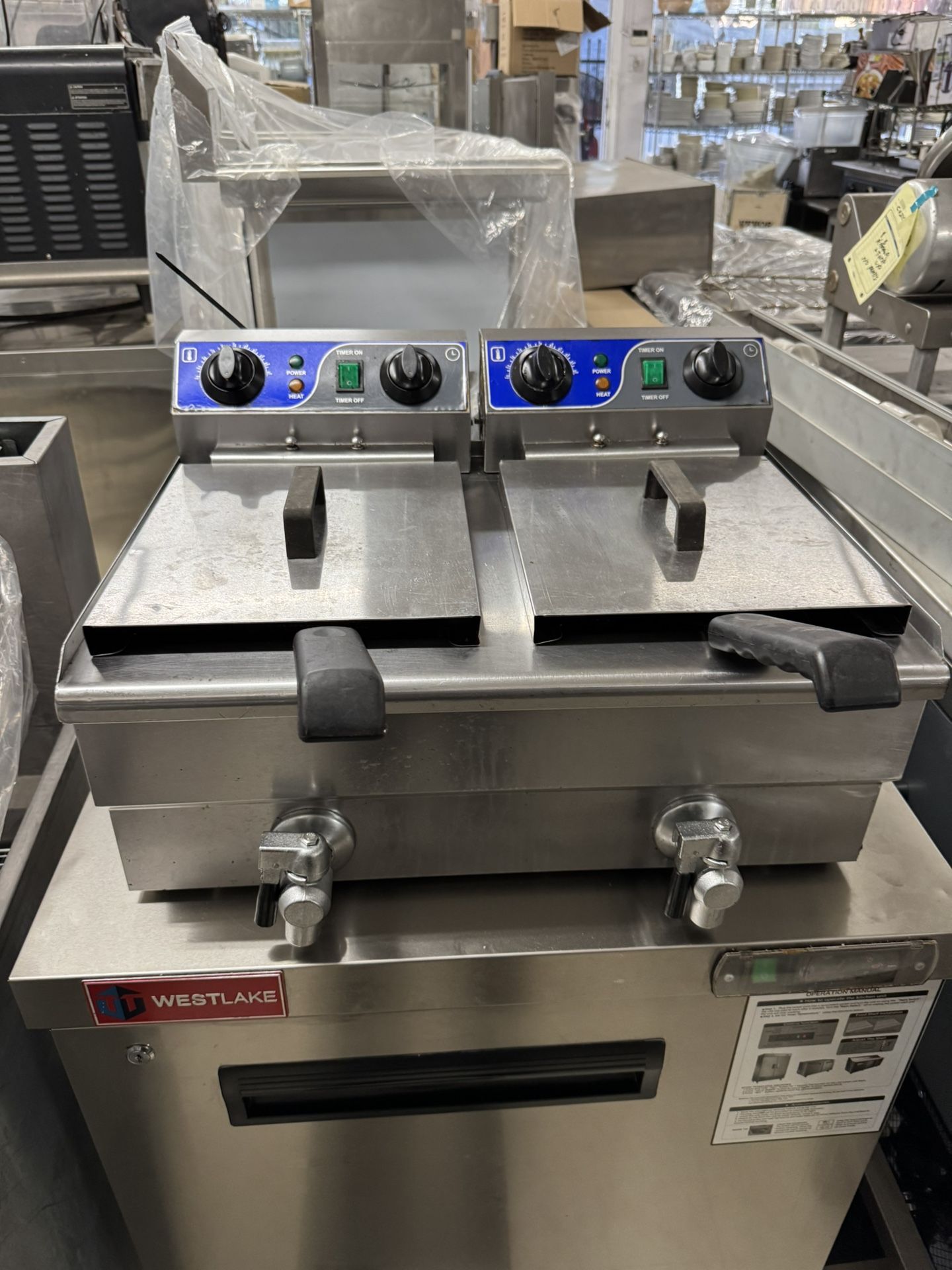 Commercial 120 volt 10lb oil capacity each compartment Works great Full electric Countertop
