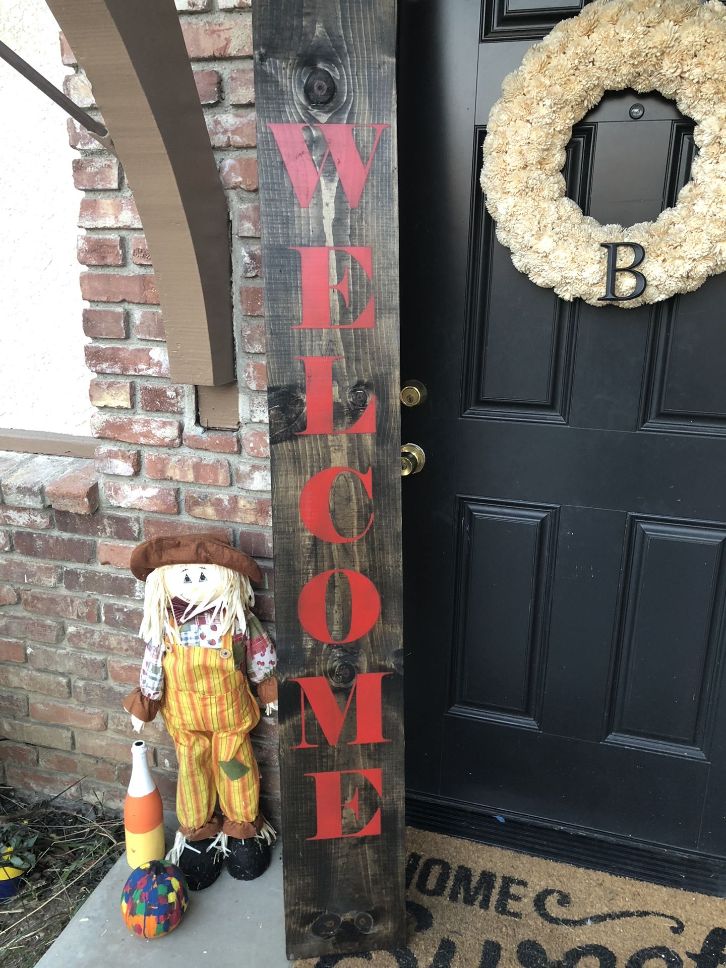 NEW 6’ WELCOME wooden sign Walnut stained wood with red writing