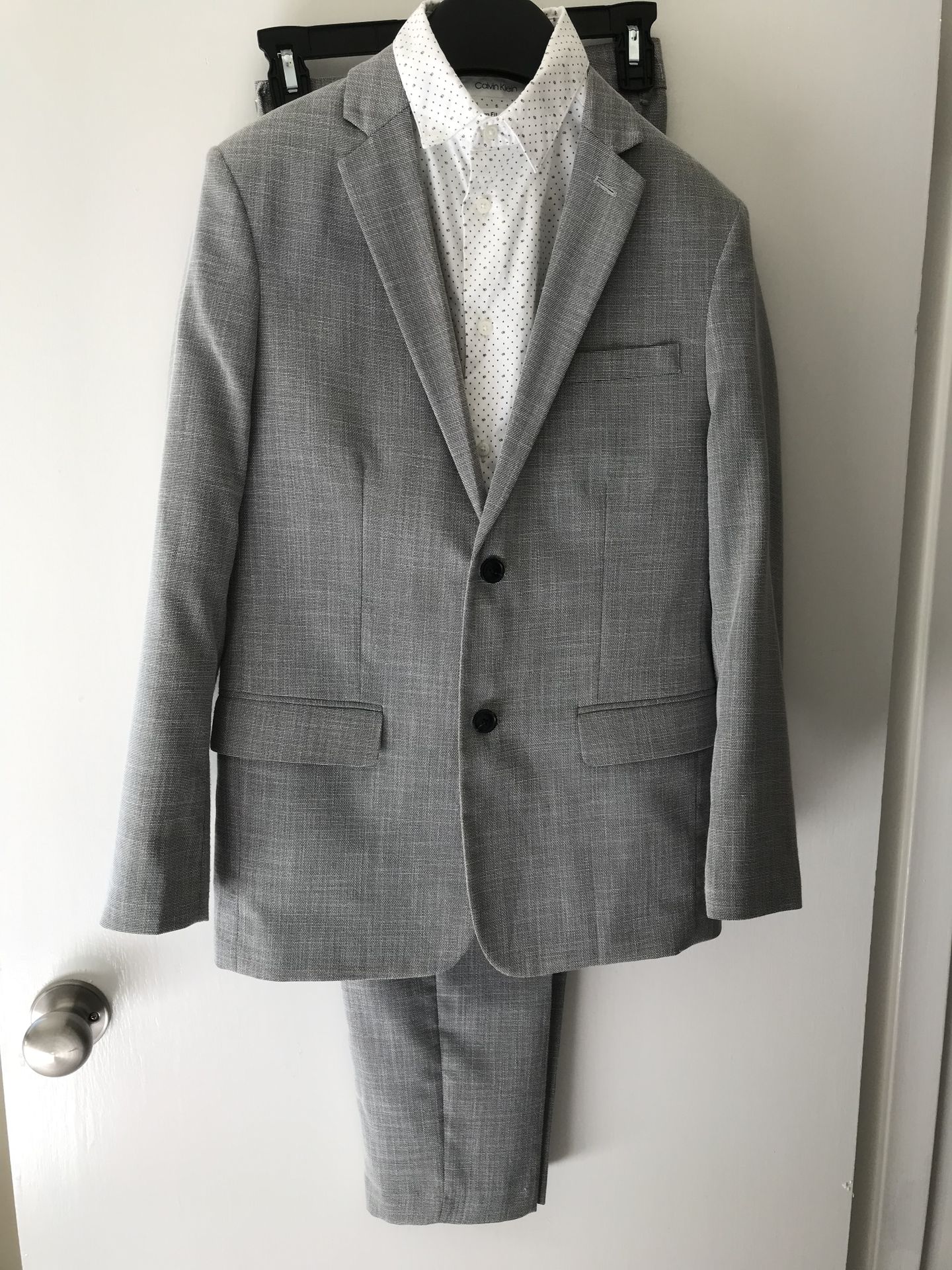 Big kids size 16 Calvin Klein Suit: Jacket, Pants Excellent condition and great quality Beautiful light gray color amazing texture quality
