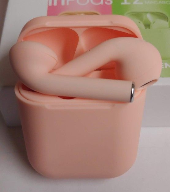 Bluetooth auto connect wireless Earbuds, easy to use, works with Android or iPhone. Color Powder Blue goes great with the correct outfit. Comes complete with charger. Opened one to Show