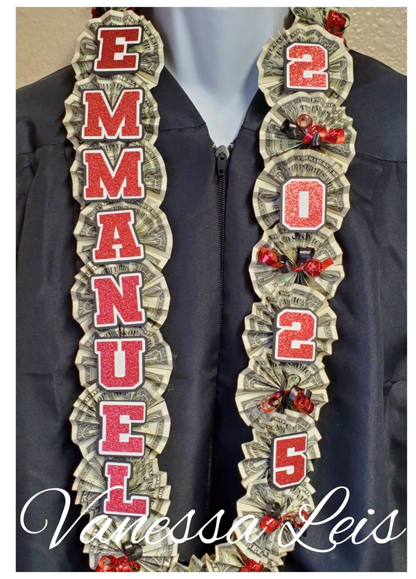 Graduation season is here! This lei comes with $25 dollars included in the price. So order yours today. Small Deposit required, Cash only at pick up.