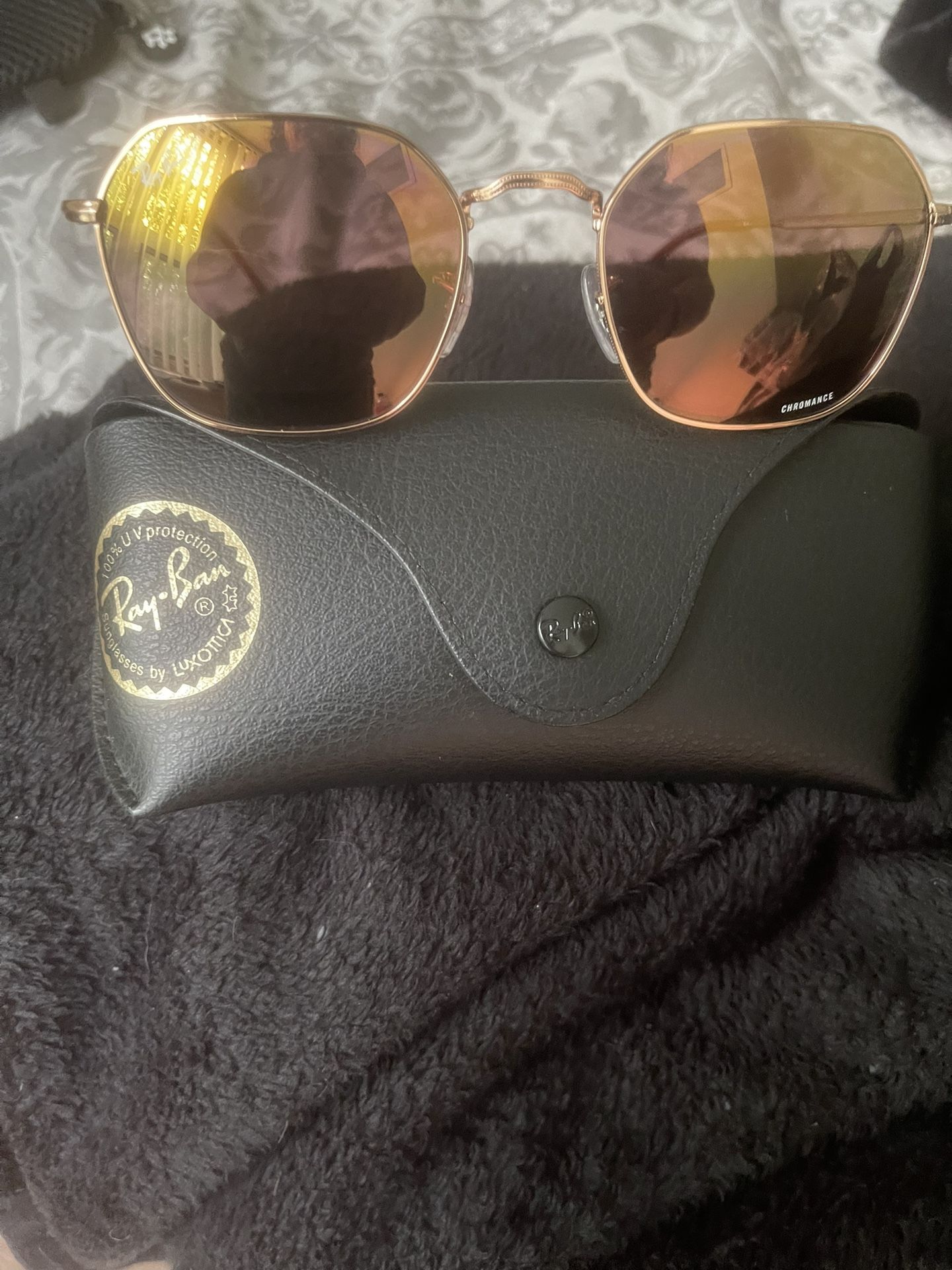 I’m selling these raybans in absolute perfect shape not a single scratch or anything comes with papers and case please feel free to contact me with any questions thank you ❤️