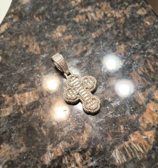 Silver moissanite cross pendant. Beautiful piece with baguette setting stones. Shines like crazy and passes diamond tester. Light worn, but in great shape. Pendant only no chain. Priced to sell asap