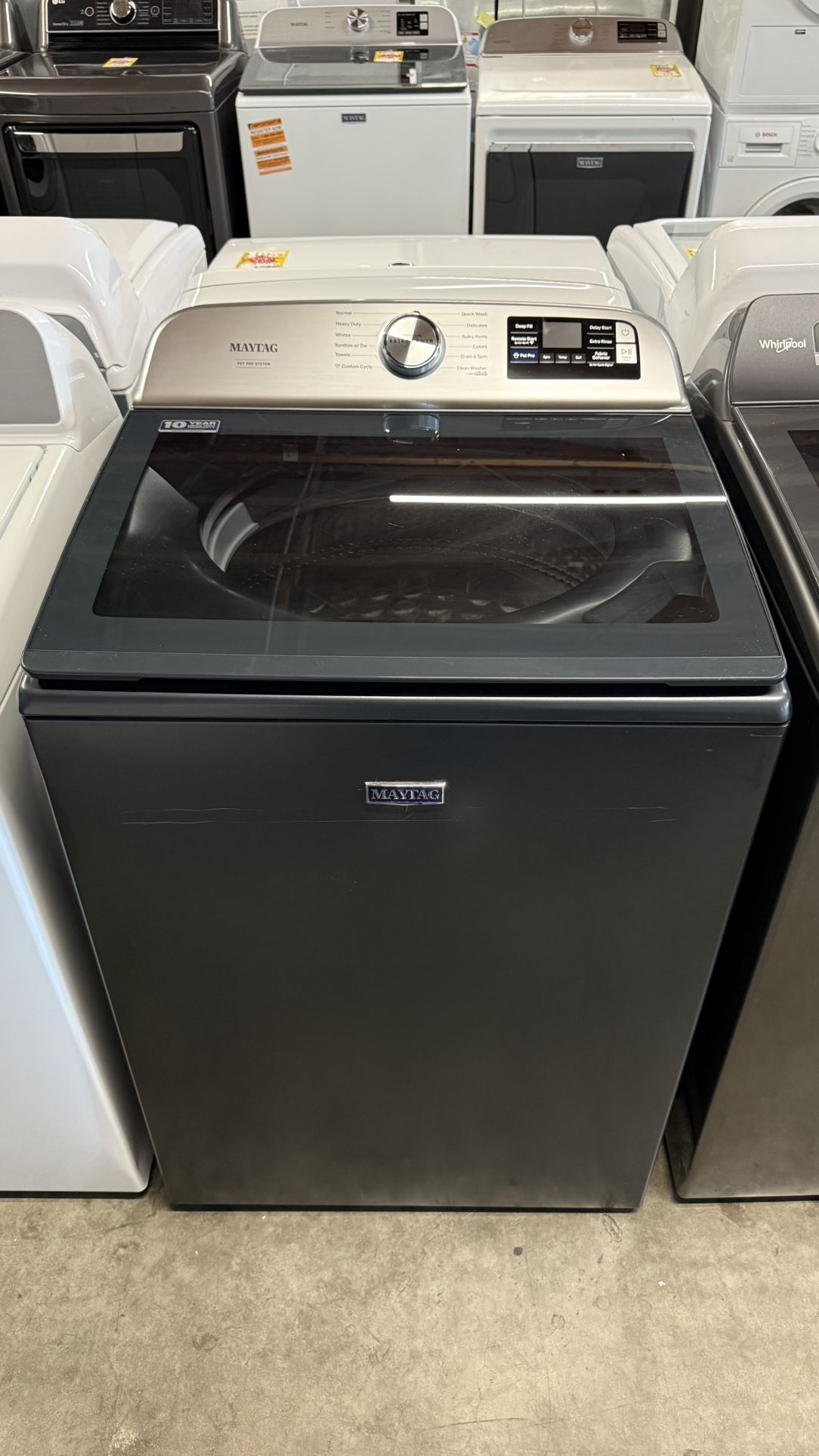 Maytag Pet Pro 5.3 Cu. Ft. Midnight Steel Impeller Too Load Washer Model #: MTW7200RF Dimensions: 42”H x 27.38”W x 27.75”D Discover unbeatable savings at Direct Appliance – your trusted authorized dealer in Modesto! We specialize in Brand New, Open-Box, Closeout, and B-Stock Appliances, all backed by full manufacturer support so you can shop with confidence. 🧾 Condition: B-Stock – Item may have light scratches, dents, or other minor flaws that do not affect performance. Tested, cleaned, and verified in full working order. 💰 Price: $699 ✅ Full Manufacturer Warranty Included ✅ Shop with Confidence – Authorized Dealer ✅ Great Prices on New & Open-Box Appliances ✅ Special Orders Available – Any Brand or Model ✅ Local Pickup & Delivery Options Looking for a different model or specific configuration? We’re happy to special order it at a competitive price. 📍 See it in person at: Direct Appliance Outlet Store 701 K Street, Modesto, CA 95354 🕒 Mon–Sat: 9AM–5PM | Sun: Closed 💡 Looking for more options? Be sure to also visit our Main Retail Store Direct Appliance 2412 McHenry Avenue, Modesto, CA 95350 🕒 Mon–Sat: 9AM–7PM | Sun: 10AM–5PM 💬 Message us with any questions or if you’d like to stop by and take a look!