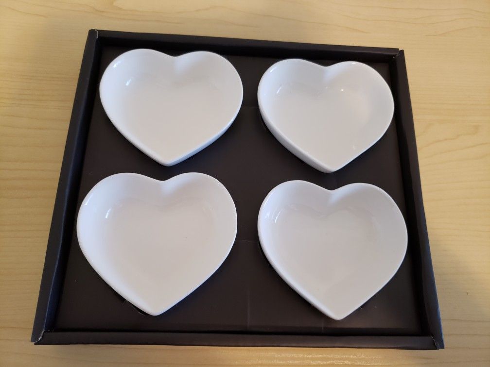 Heart Shaped Sauce Bowls (4) Porcelain. New, open box. Location: Lacey, 98503