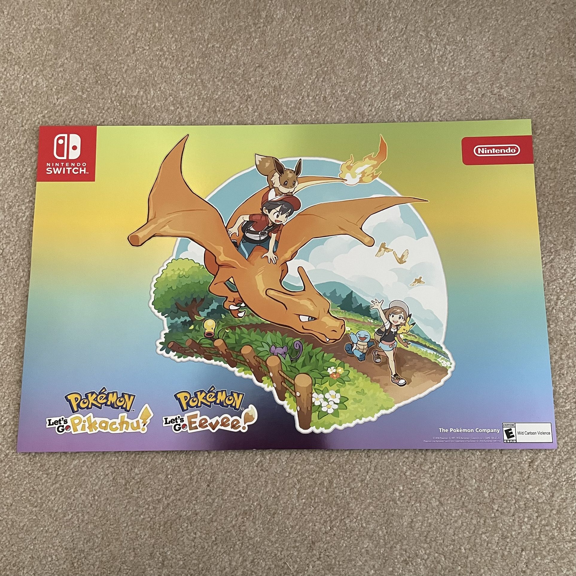 Pokemon Let’s Go Pikachu Eevee Charizard Holographic Holo Reflective Double Sided Poster Brand New Nintendo Switch For Video Game System Console