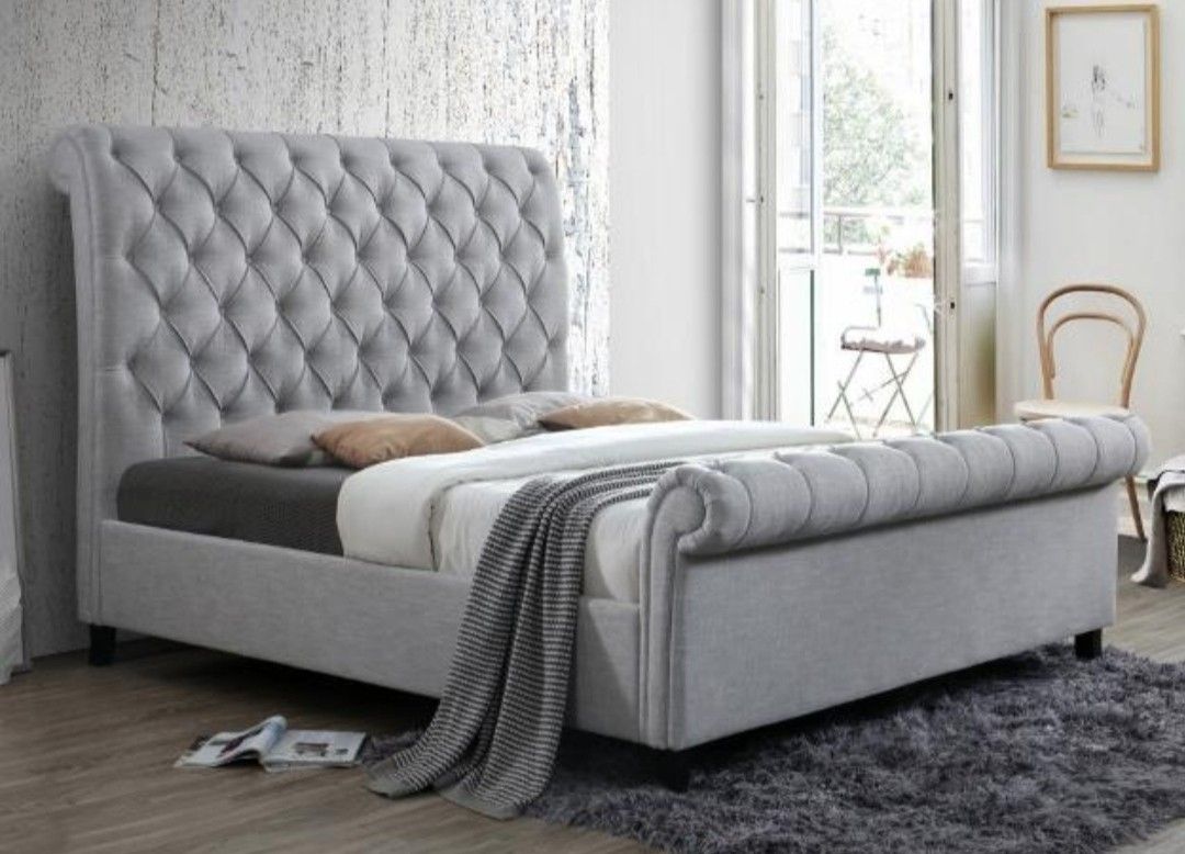 Kate Gray Upholstered Queen Sleigh Platform Bed