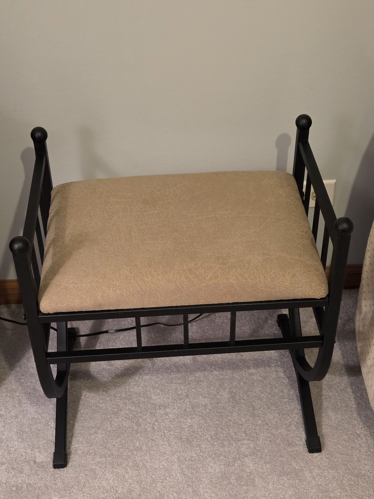 2 small vanity seats or benches. Metal frames with upholstered seats. $35 each or 2 for $60. In very good condition. Non-smoking environment. Pick up in Tinley Park.