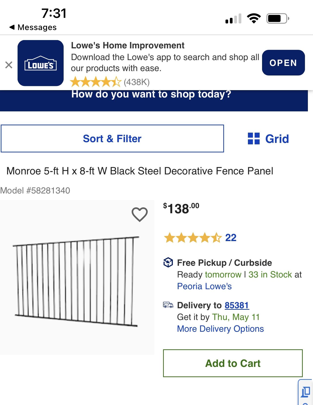 Selling 6 full size 5x8ft fence panels plus 2 smaller panels (cut). one panel door attached. Comes with poles, joint attachments. Panels will cover 55+ feet. Sell all for $600 (buyer must buy all panels together). Thanks