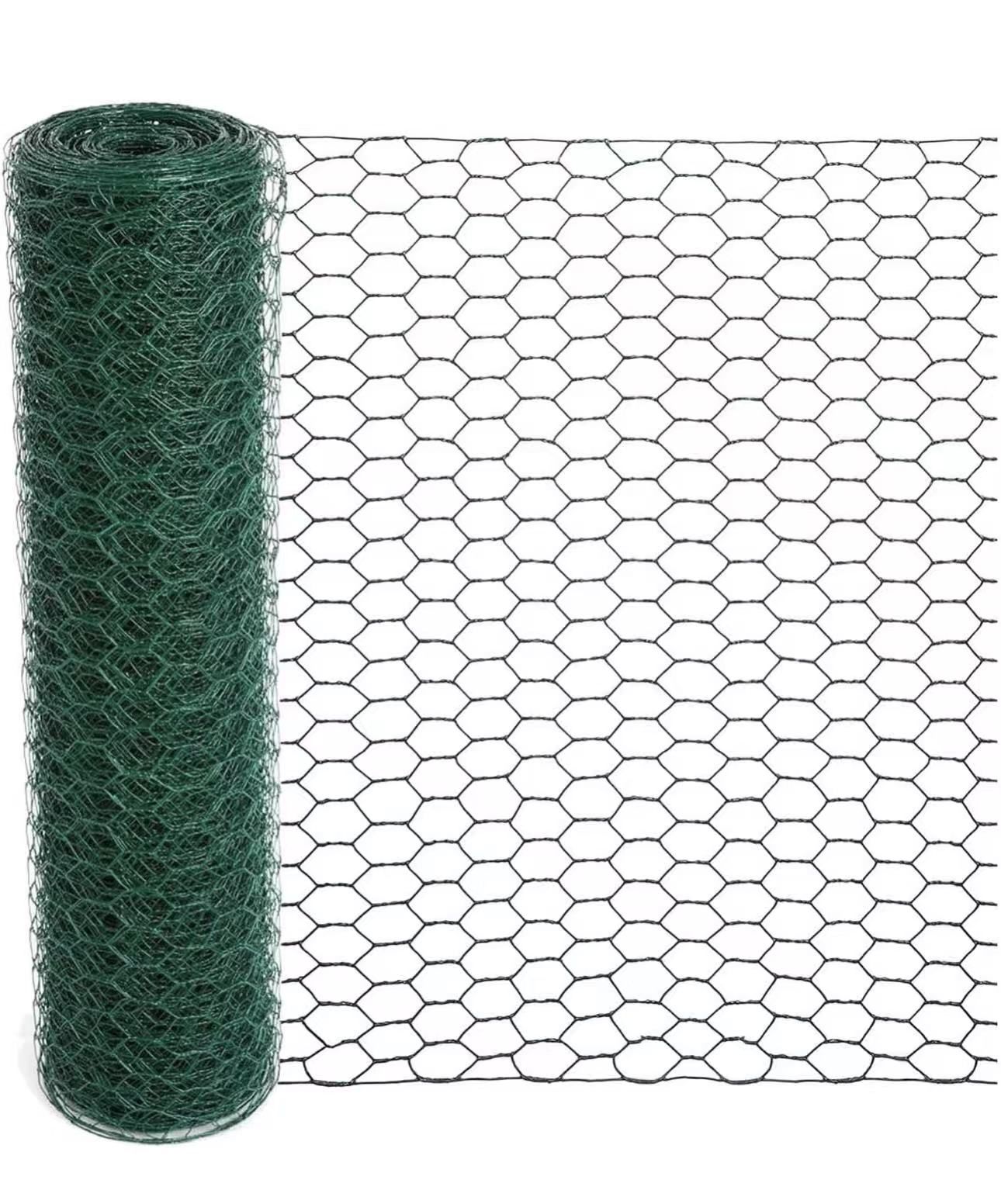 Chicken Wire for Floral Arrangements, 3’X50’ Green Mesh, Galvanized PVC Coated Netting Fence for Crafts, Poultry, Garden