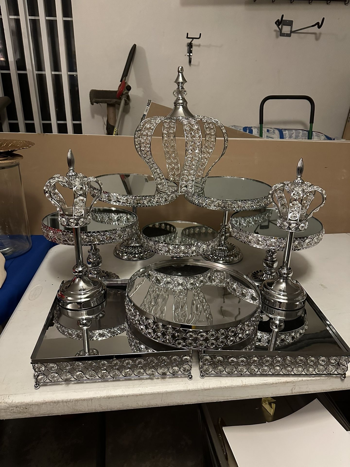 Got a beautiful silver stand set for dessert table or any arrangement all brand new use only once.