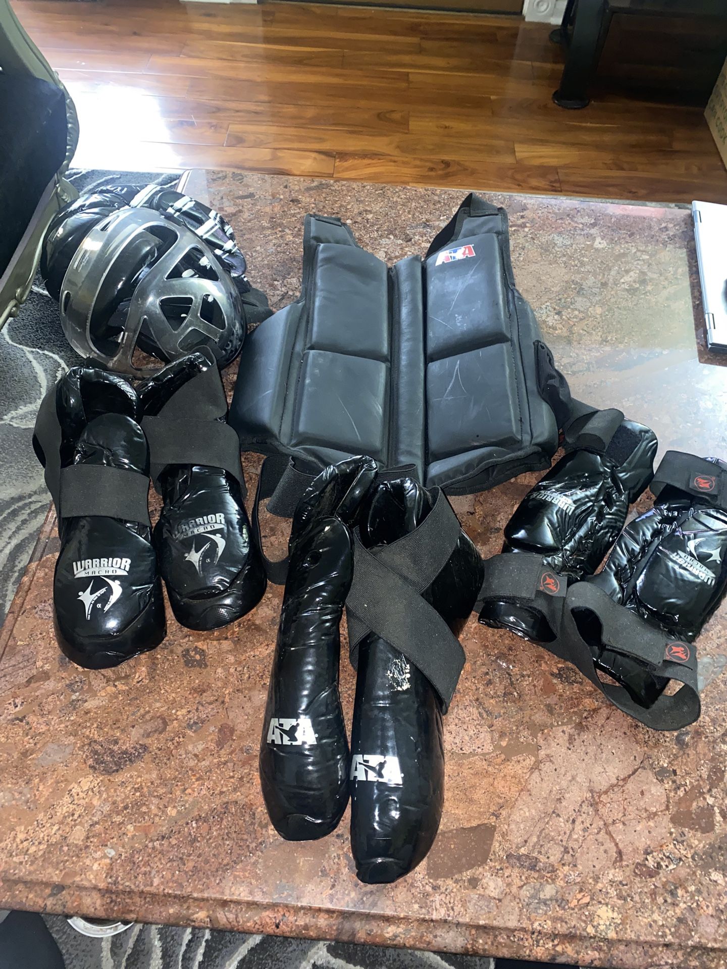 Lot Of Martial Arts Protective Gear To Protect Head, Chest, Shin And Feet Size large Will you meet for pickup at grocery outlet parking 8620 sw hall blvd, Beaverton